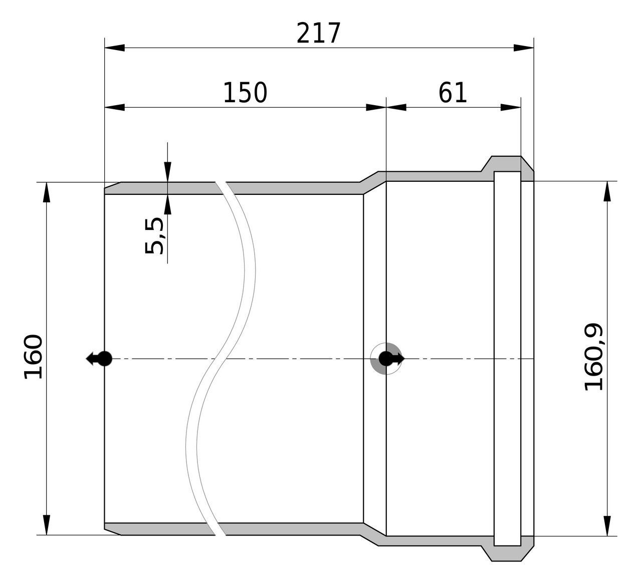 Wavin AS+ Rohr DN100 Länge 150mm Schallschutz 19dB Abflussrohr