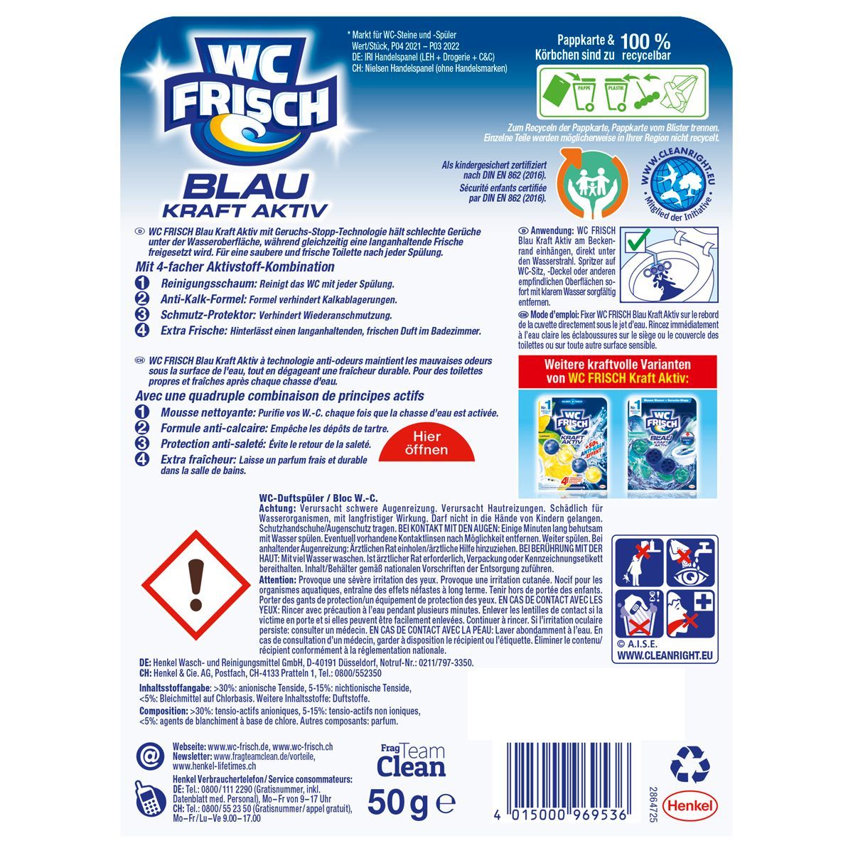 WC Frisch Blau Kraft Aktiv Chlor für blaues Wasser 50g 2er Pack