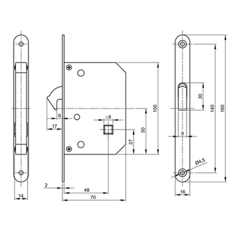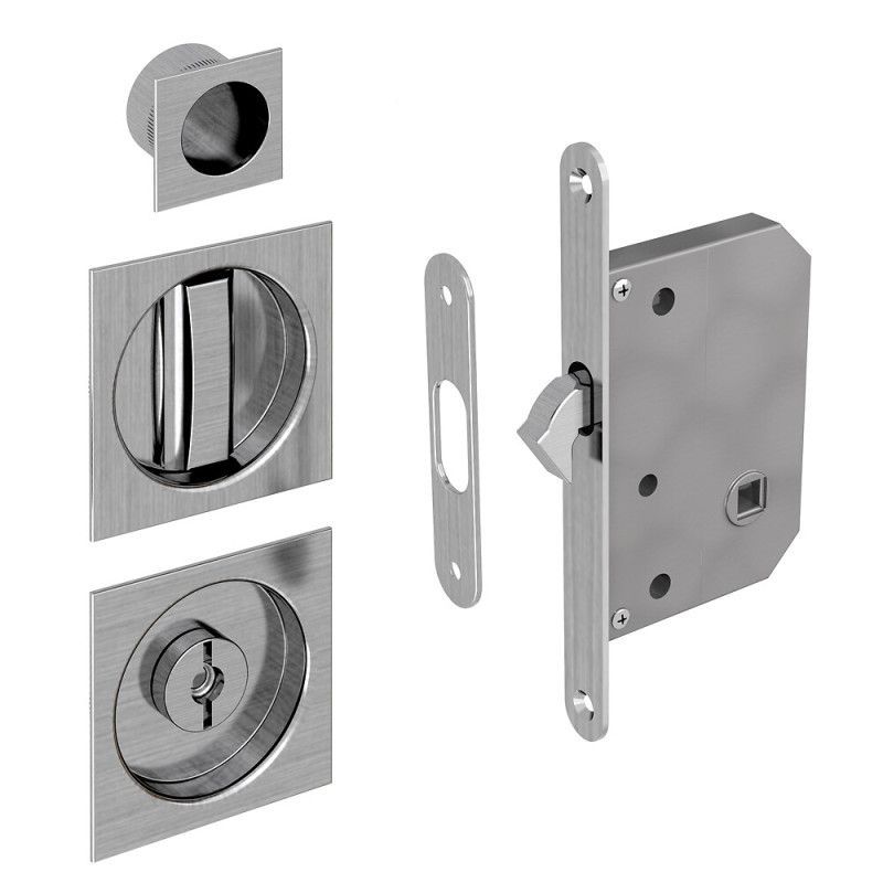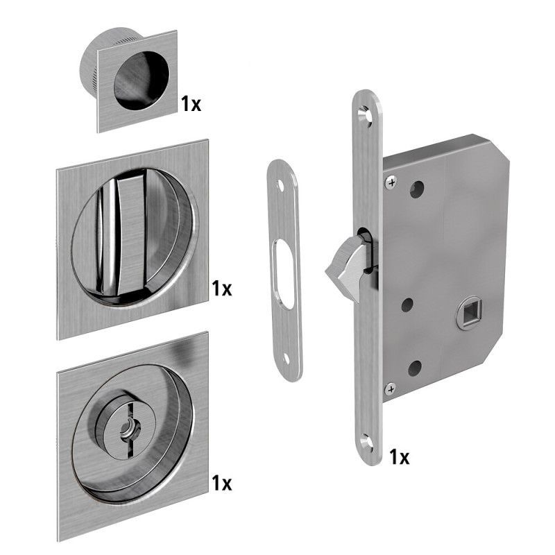 WC Hakenschloss Set für Schiebetüren, eckige Türrosette mit Griffmulde, Badezimmersch