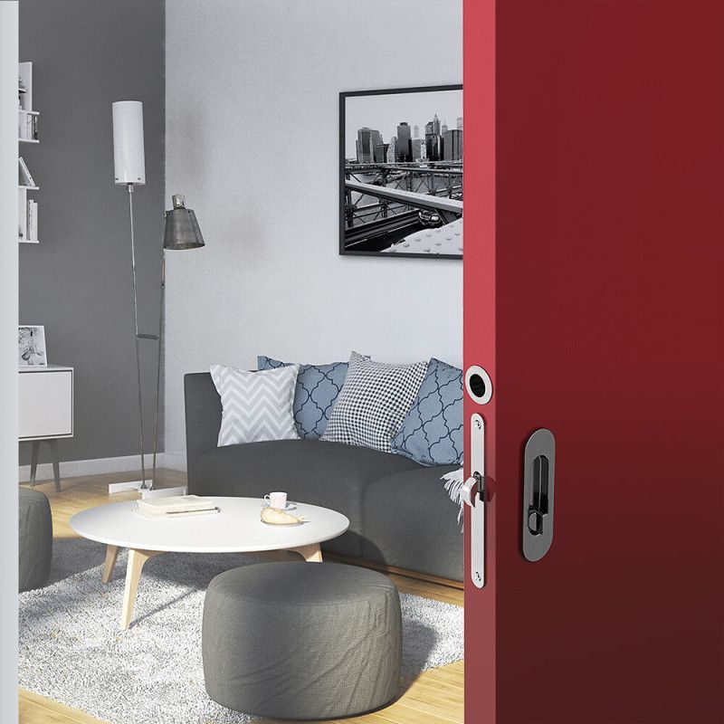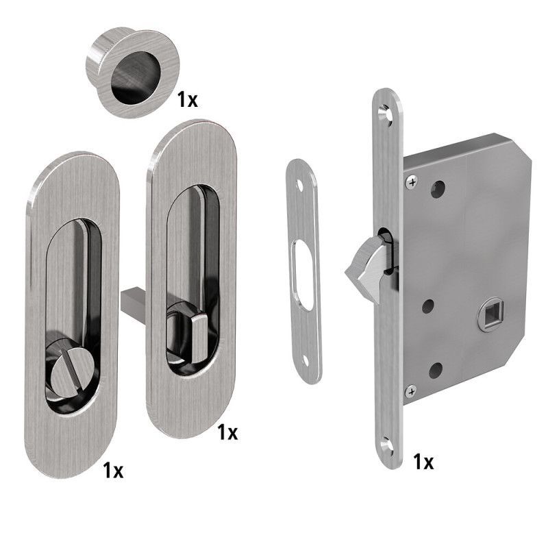 WC Hakenschloss Set für Schiebetüren, ovale Türrosette mit Griffmulde, Badezimmerschl
