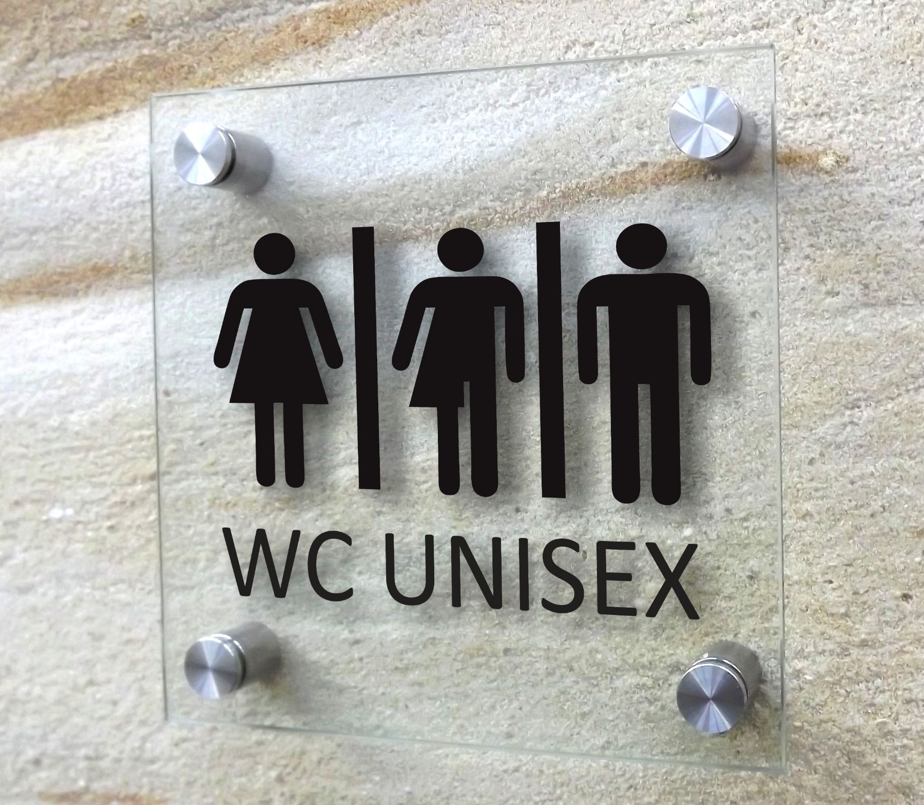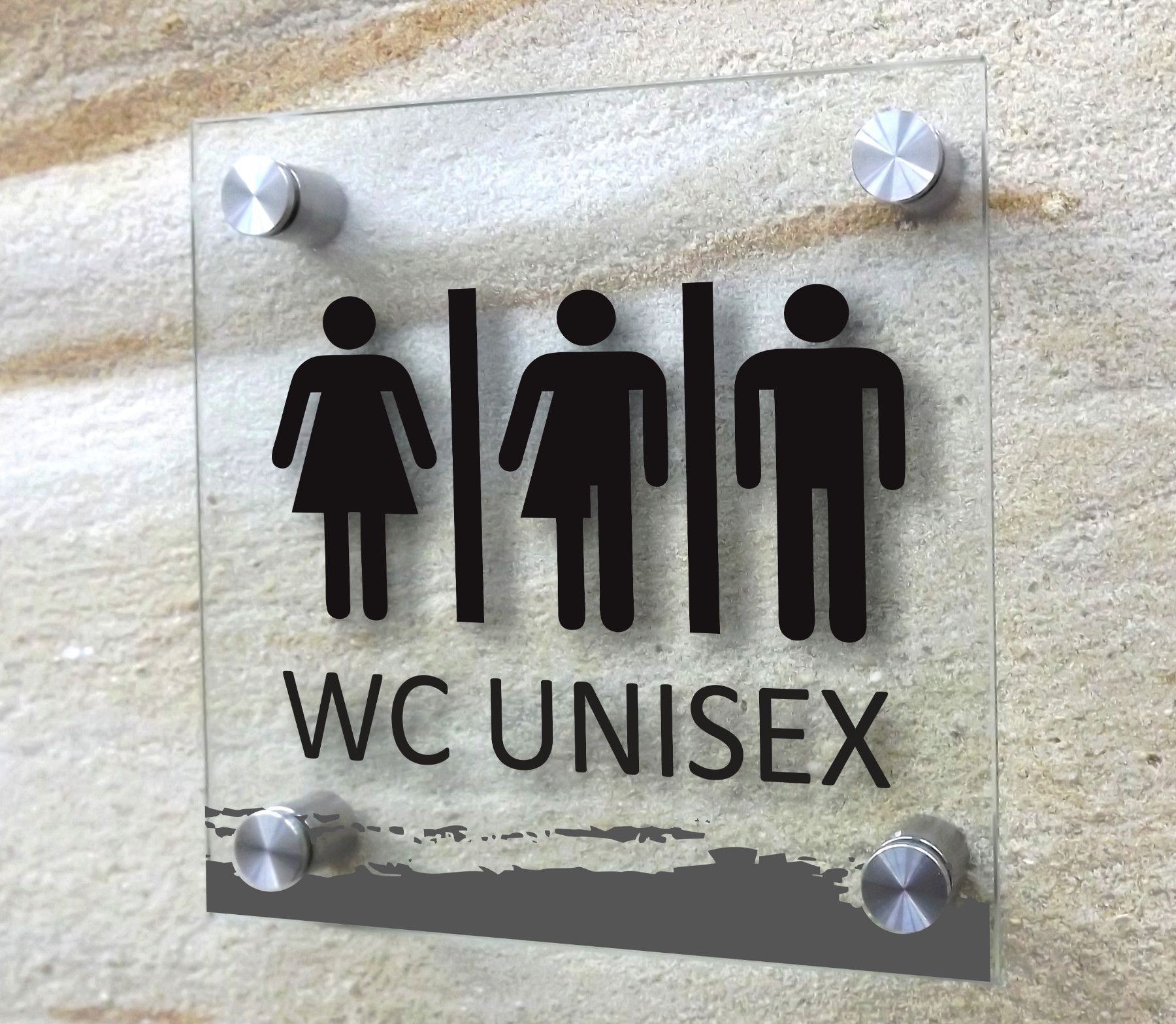 WC Schild "Unisex" Mann I Divers I Frau Toilettenschild WC Glasschild 15 x 15 cm