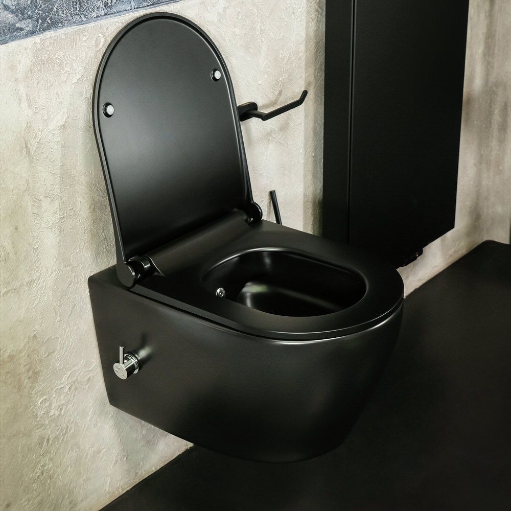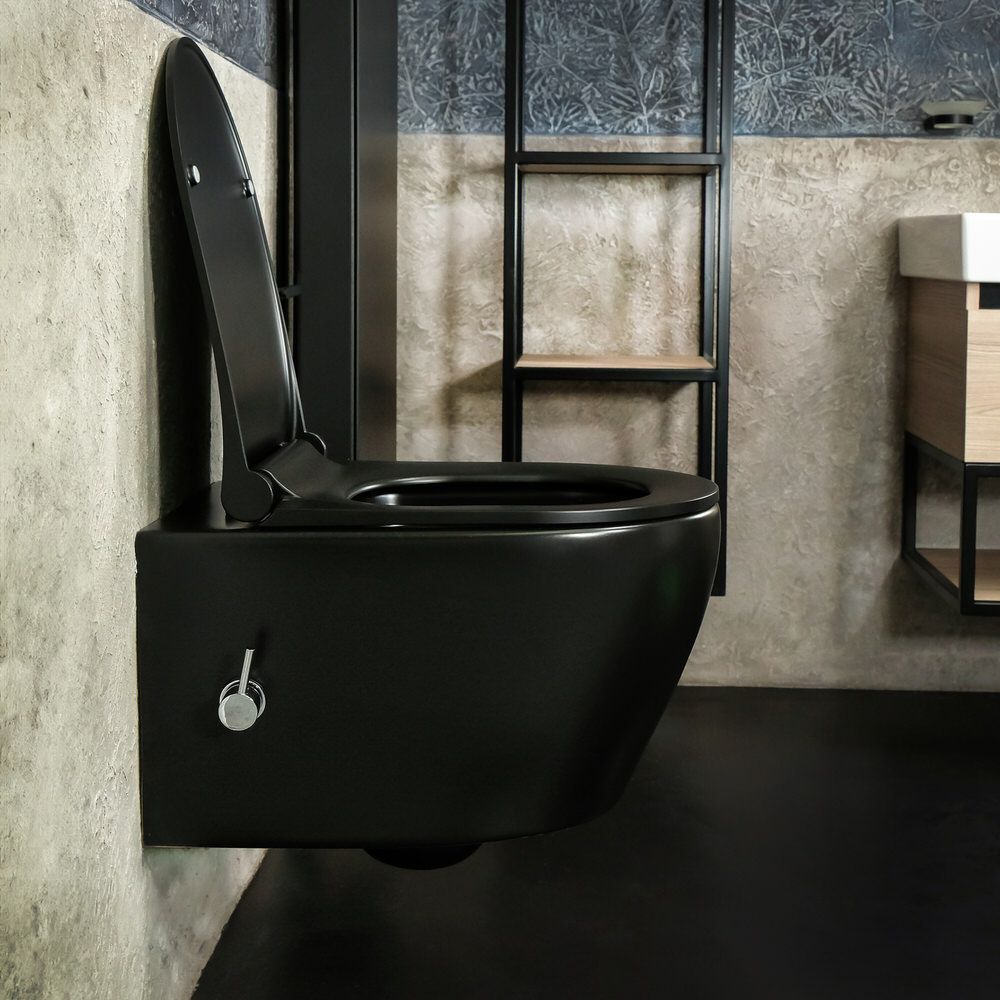 WC Schwarz Matt Spülrandlos Wand WC mit Taharet Armatur Softclose Deckel Toilett