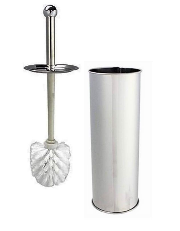 WC-Set, Edelstahl, D= 10 cm, H=38 cm, Bürste weiß, Edelstahl + PP