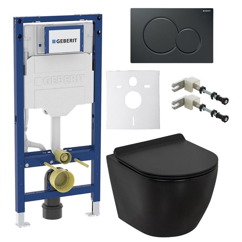 Geberit WC Set Geberit Vorwandelement Duofix Sigma Wand WC Arax spülrandlos schwarz