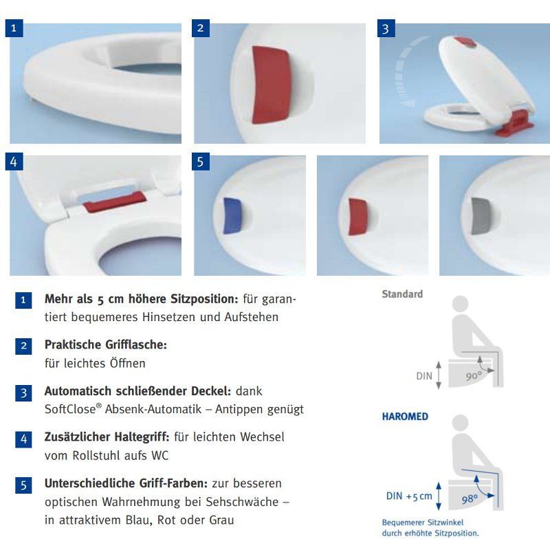 Haro-plast WC-SITZ Haromed 5cm höher, extra stabil, SoftClose, farbig, Barrierefrei