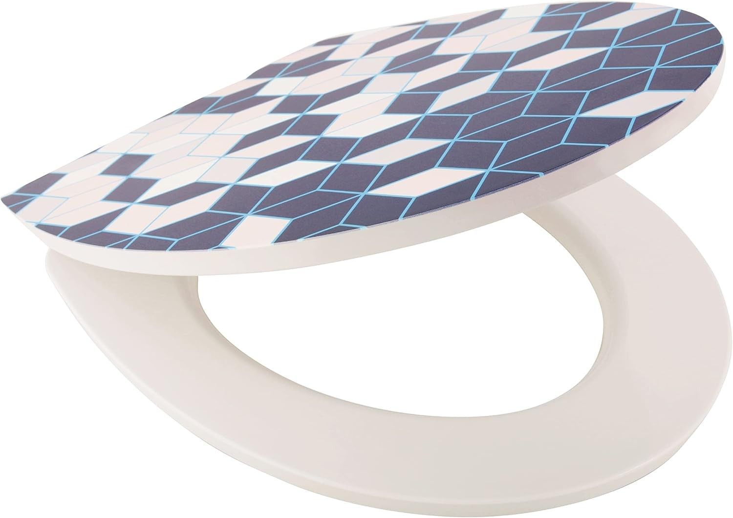 WC-Sitz mit Absenkautomatik, Dekor Qube, Matt/Glanz Oberfläche Duroplast