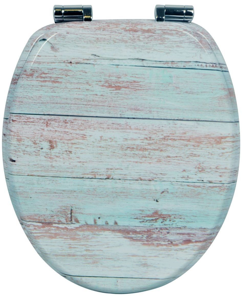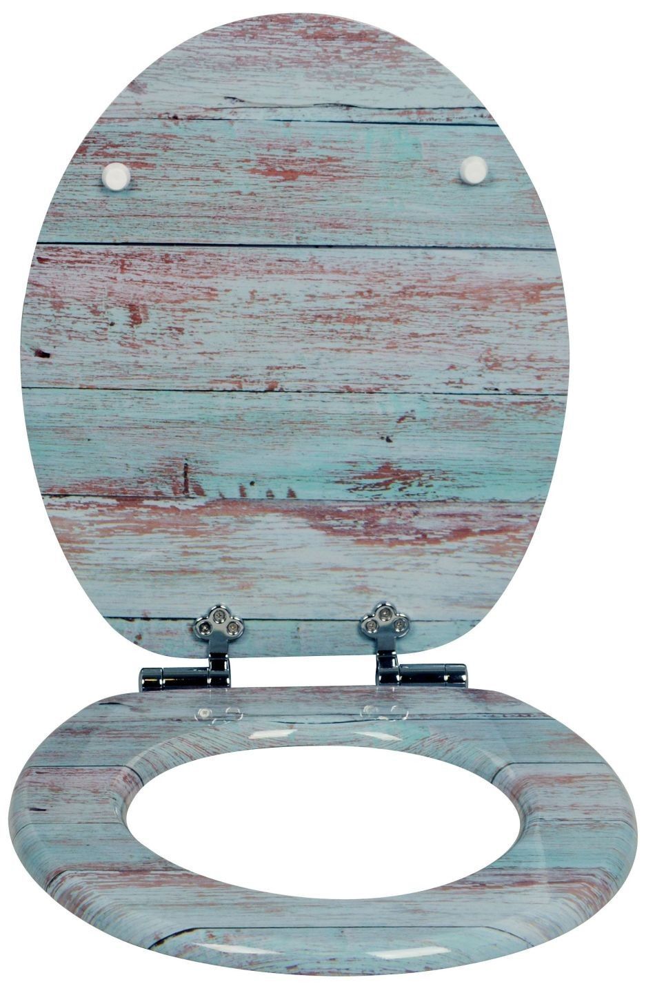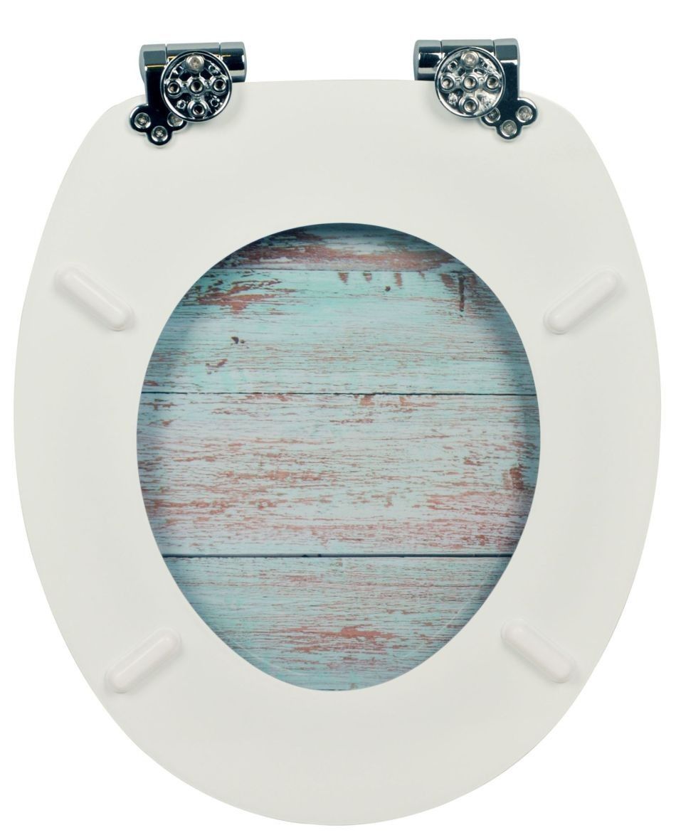 VEREG MDF WC Sitz Shabby Chic II mit Edelstahlscharnieren, Toilettendeckel mit Holzkern (MDF), angenehmer Sitzkomfort, max. belastbarkeit bis 175 kg