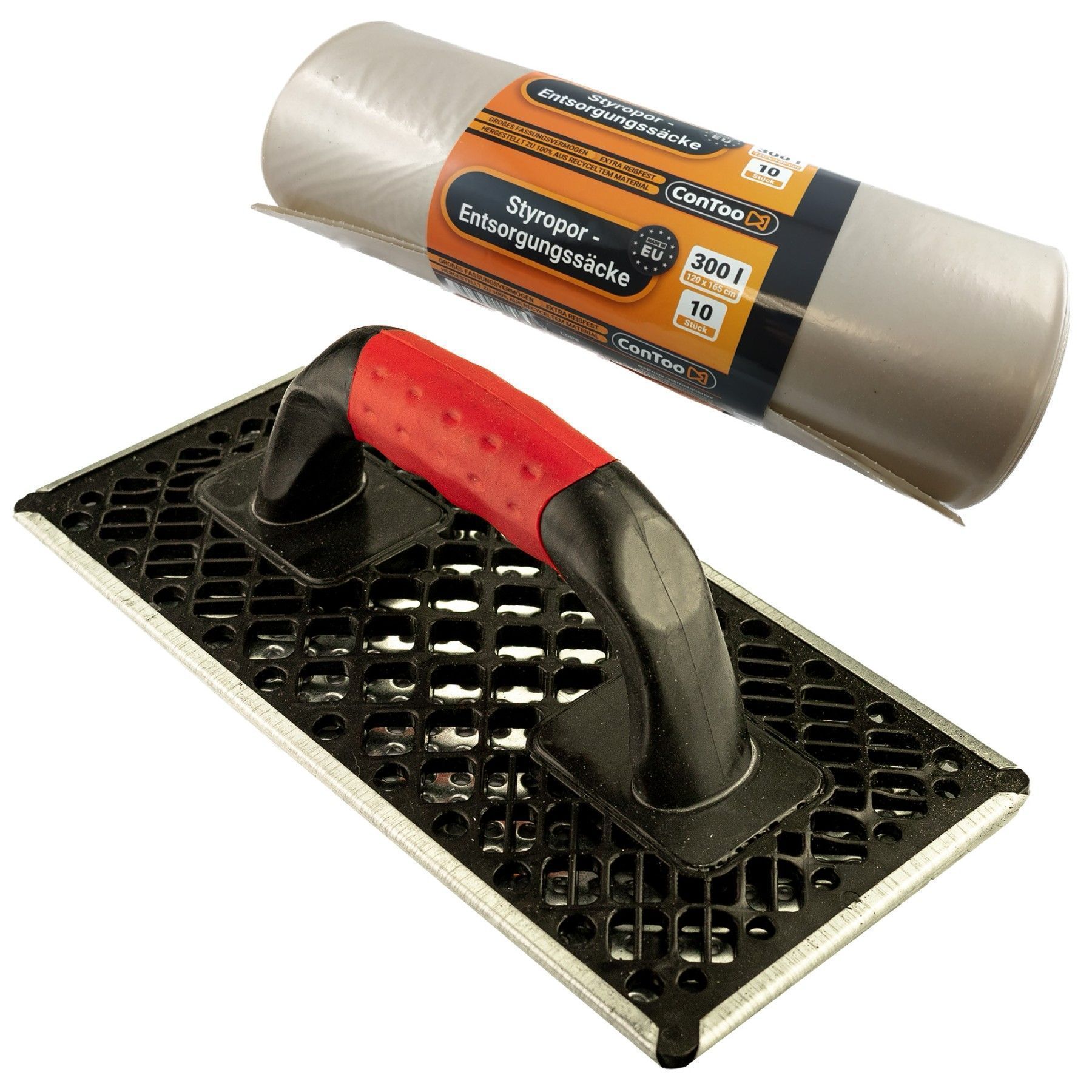 WDVS Schleifbrett Raspel Egalisierungsbrett 270mm + Styropor-Abfallsäcke 10x300L