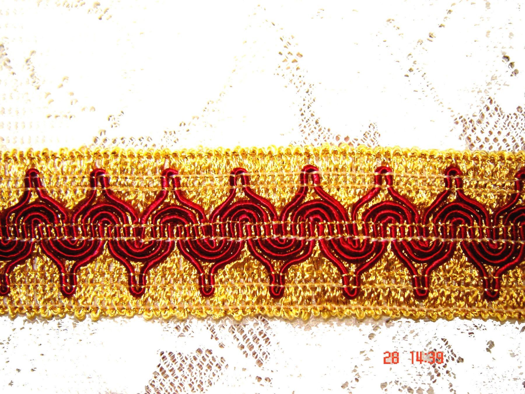 . hochwertiges Webband wunderbare Qualität gemustert , rot und glitzernd goldfarben das Webbandband ist 3,3 cm breit , Rest von 1,05 Meter ausgezeichnete Verarbeitung , deutsche Herstellung aus Auflösung unserer Lagerbestände . Bitte sehen Sie sich hier alle meine meine anderen Artikel an . . Hut Hü