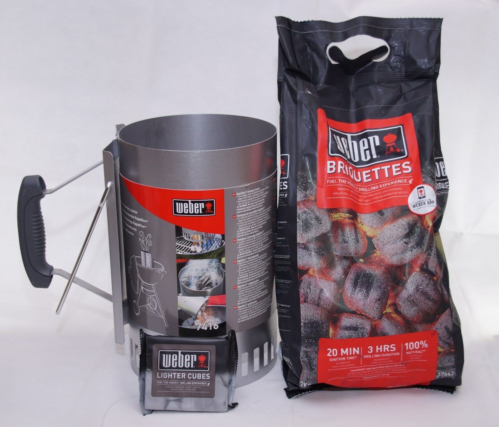 Weber Starterset inkl. 2 KG Briketts & Anzünder Rapidfire Anzünd Set Grill Kamin