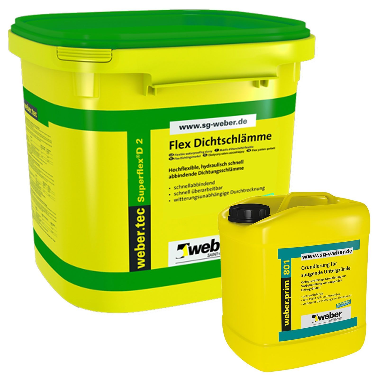 weber. tec Superflex D2 Dichtungsschlämme 24kg + weber. prim 801 Grundierung 5kg