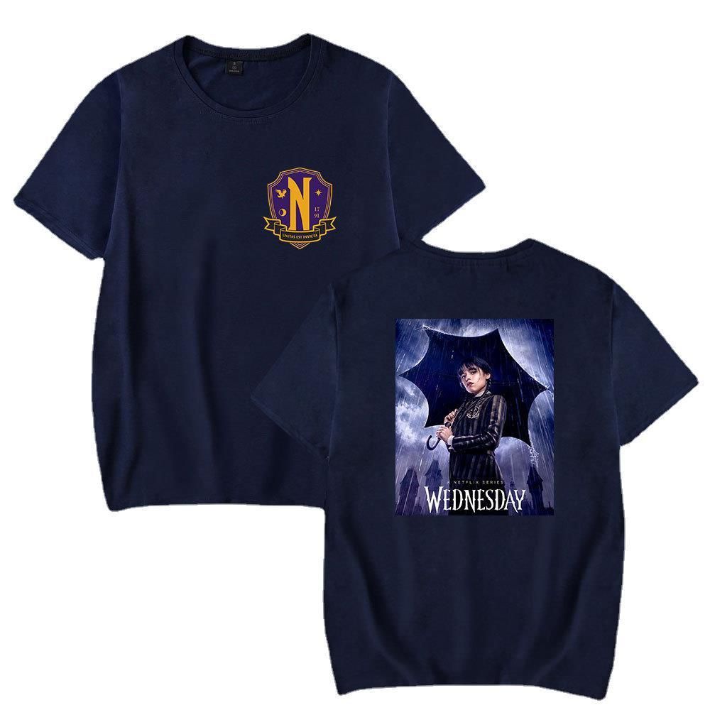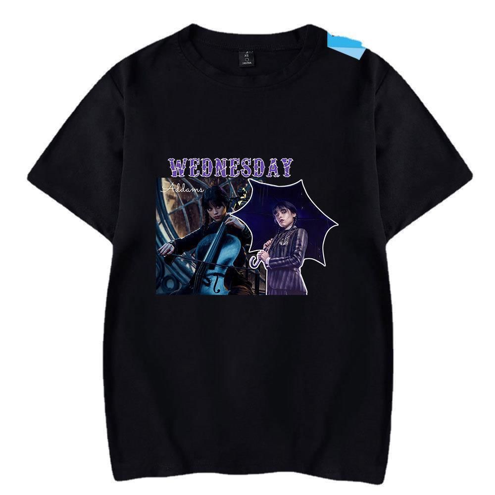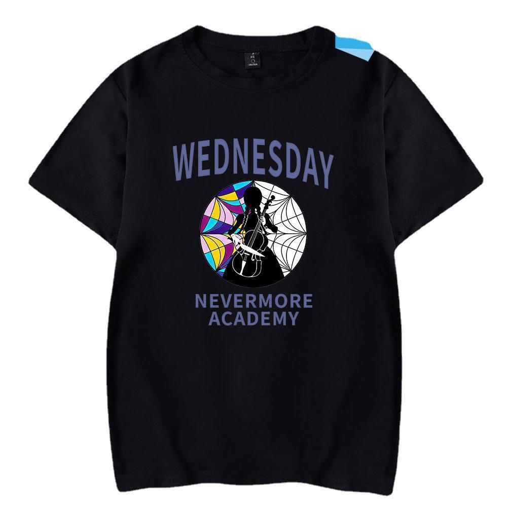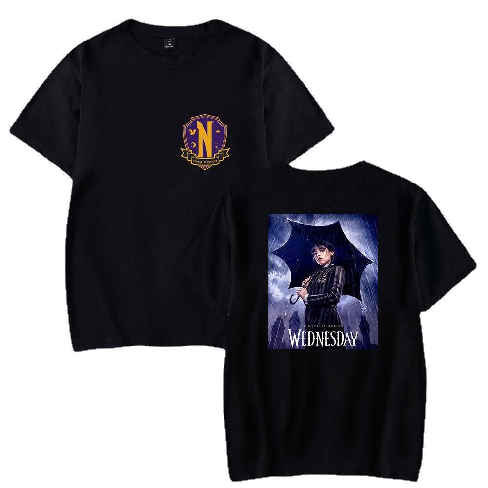 Wednesday T-shirt Addams Periphery Tee Druck Nevermore Freizeit Top für Damen