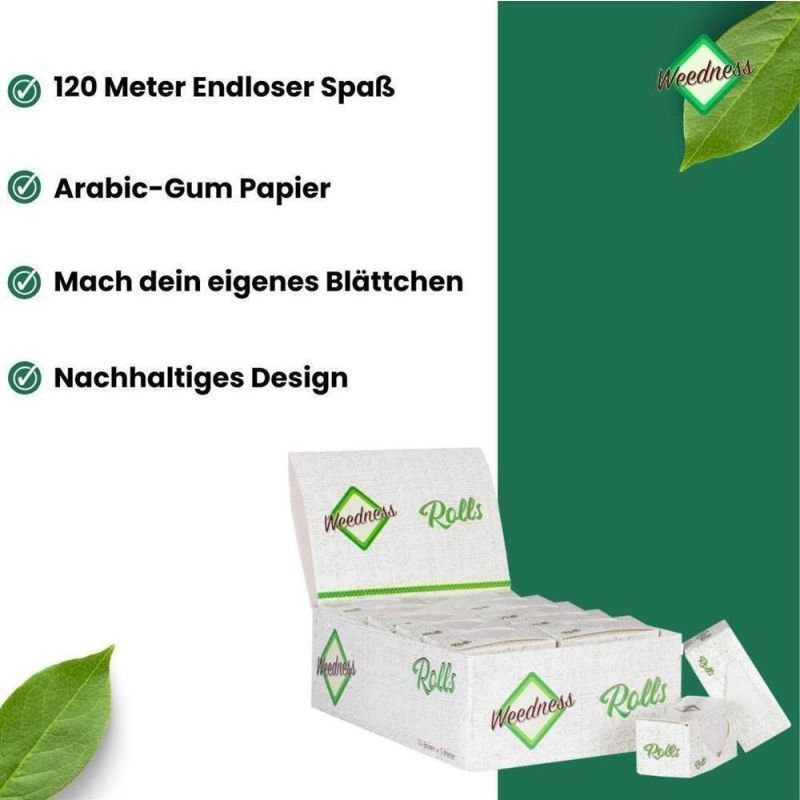 Weedness Endless Paper Filter Box 100 Aktivkohlefilter + 24 Heftchen je 5 Meter Rolls