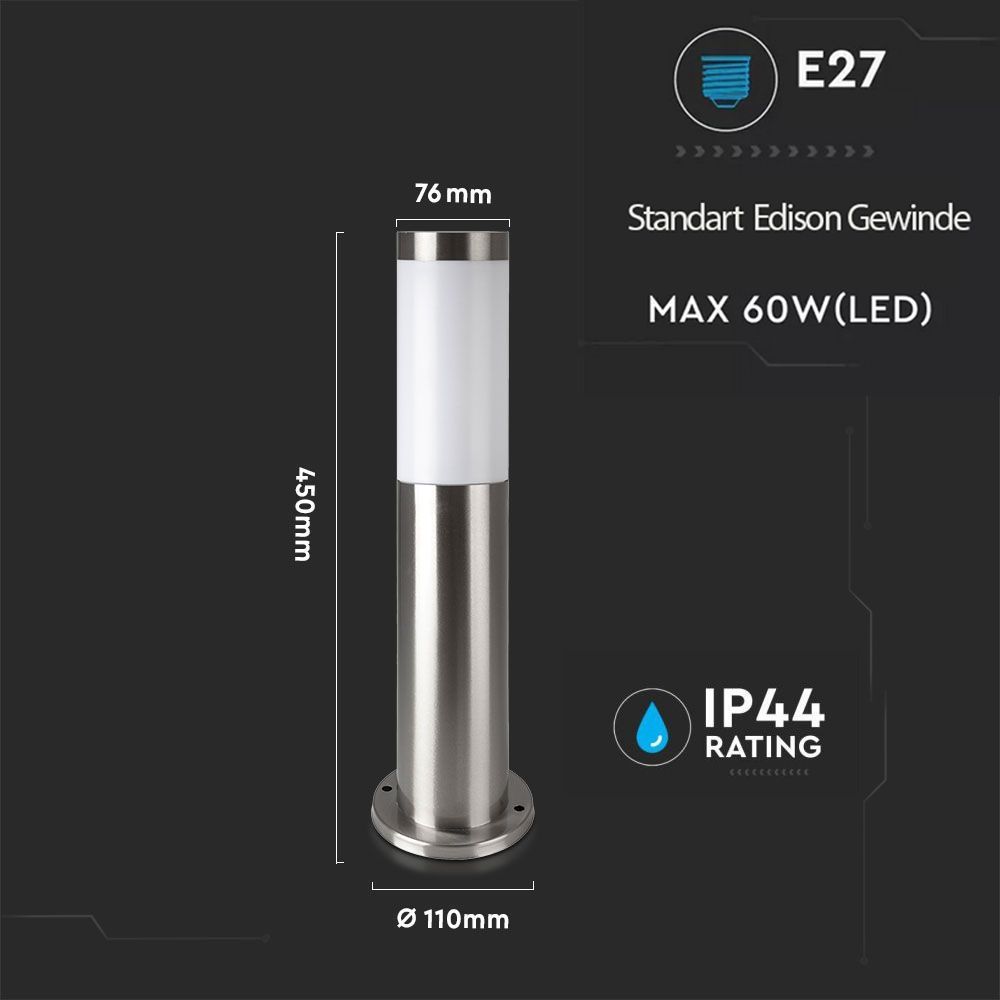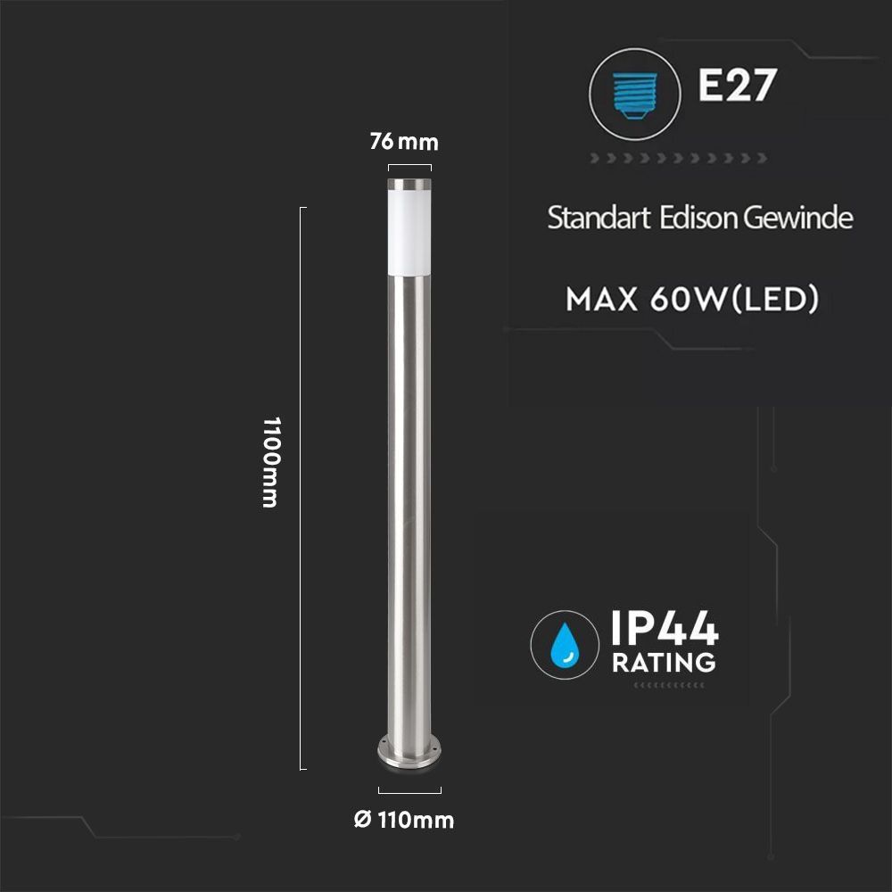 Wegeleuchte Wegelampe Gartenleuchte mit Edelstahlgehäuse IP44 E27 Fassung