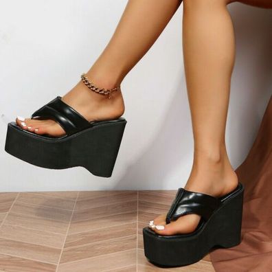 Sexy Damen Sandalen Clubwear Plateau Party Schuhe Hausschuh Sommer Kunstleder