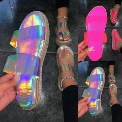 Damen Damen Slip On Pantoletten Sommer Sandalen Flache Strandschuhe Hausschuhe G