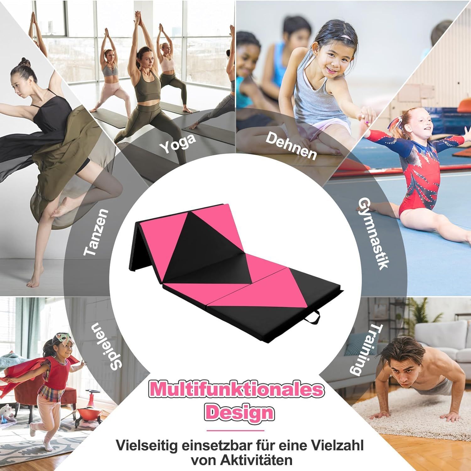 Weichbodenmatte klappbar, Gymnastikmatte tragbar, Yogamatte Turnmatte Klappmatte