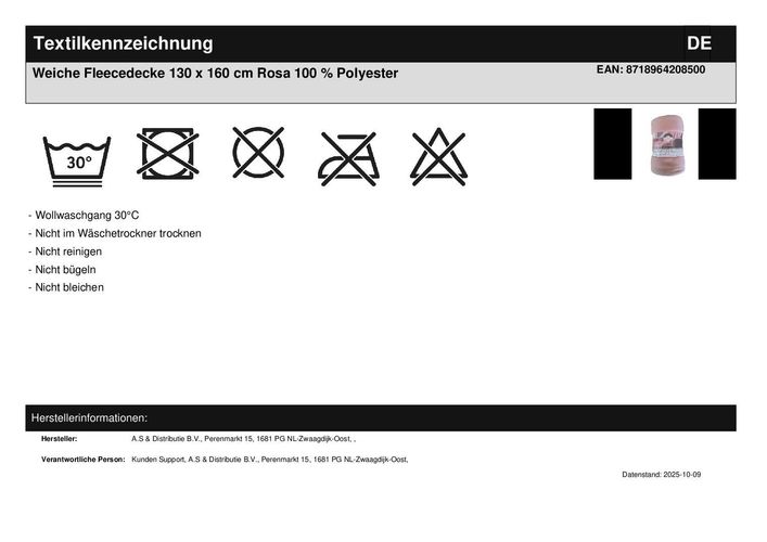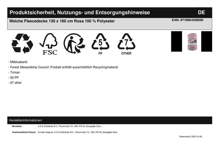Weiche Fleecedecke 130 x 160 cm Rosa 100 % Polyester