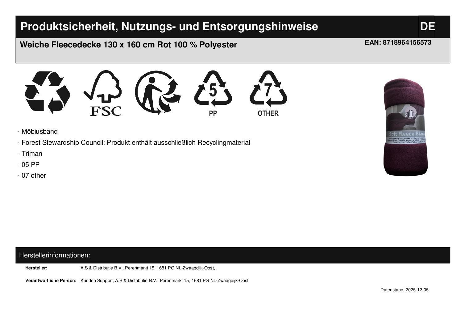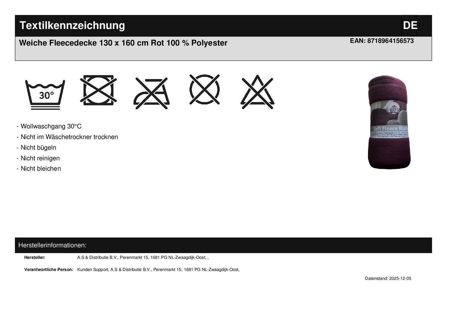 Weiche Fleecedecke 130 x 160 cm Rot 100 % Polyester