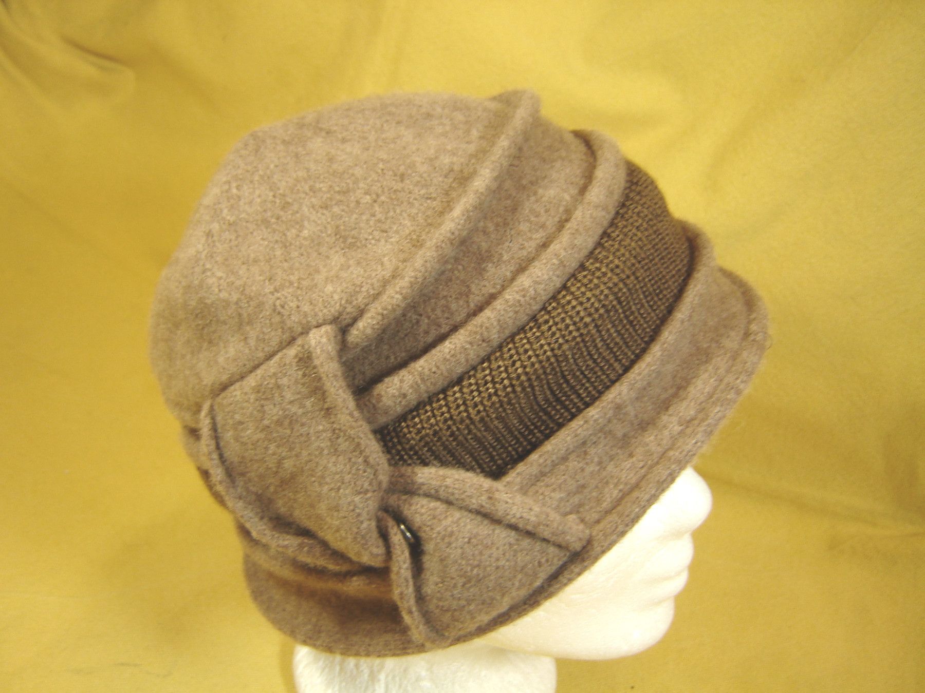 . . kuschlig warme Walkmütze doppelt dick , Walkmütze gearbeitet wie ein Hütchen mit schmalem Rand besetzt mit einem Strickrand für absolute Wärme hoch genug um sie über die Ohren zu ziehen sehr weiche Qualität aus 100% Wolle problemlose Handwäsche in Farbe hellbraun . Größe passend für 56 bis 58 cm