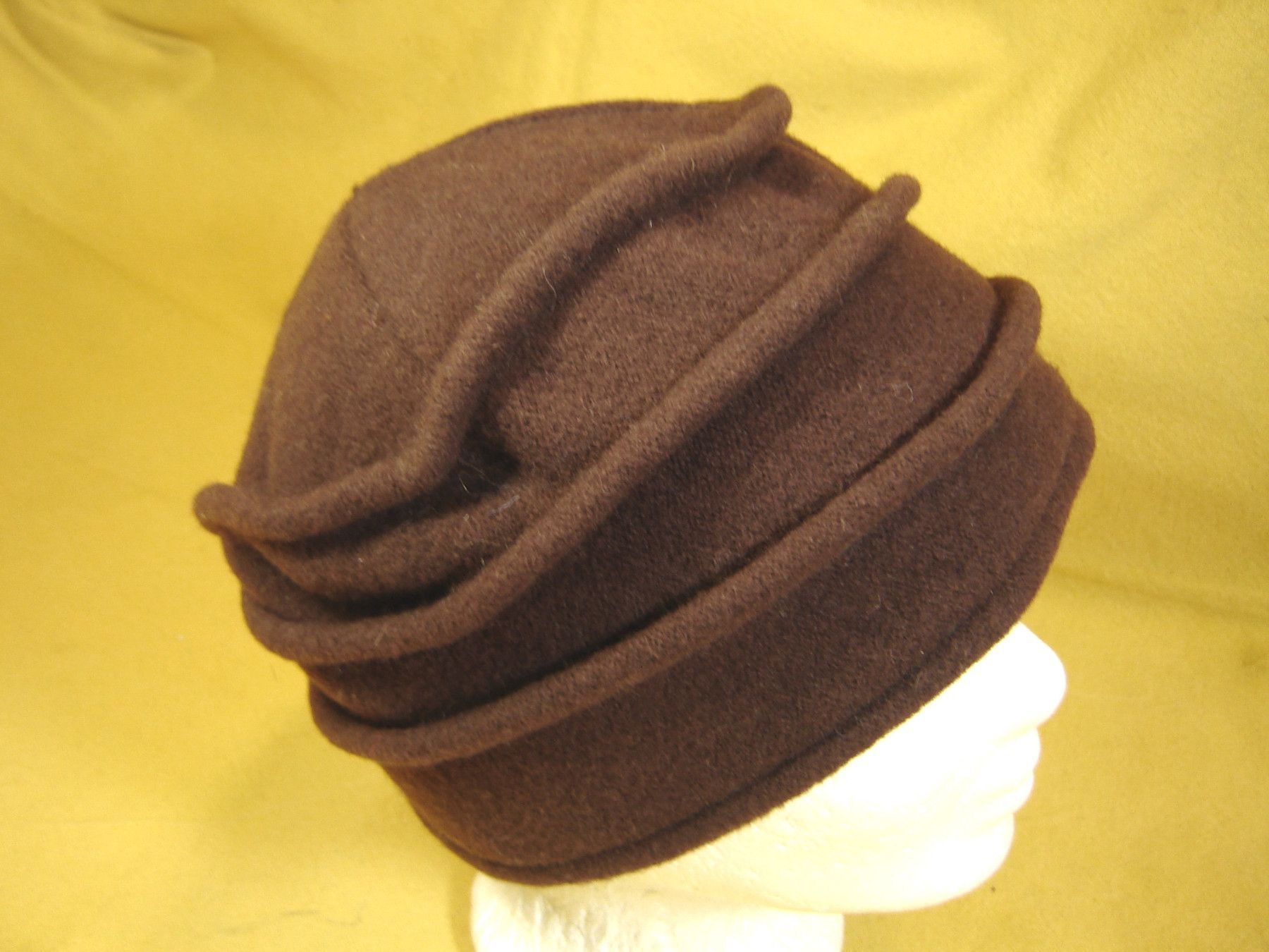 . kuschlig warme Walkmütze weiche Walkmütze gerafft hoch genug um sie über die Ohren zu ziehen sehr weiche Qualität aus 100% Wolle Lambswool problemlose Handwäsche Farbe mittelbraun Größe passend für 55 bis 57 cm Kopfumfang , sollten Sie eine andere Größe benötigen , schreiben Sie mich Bitte an . Bi