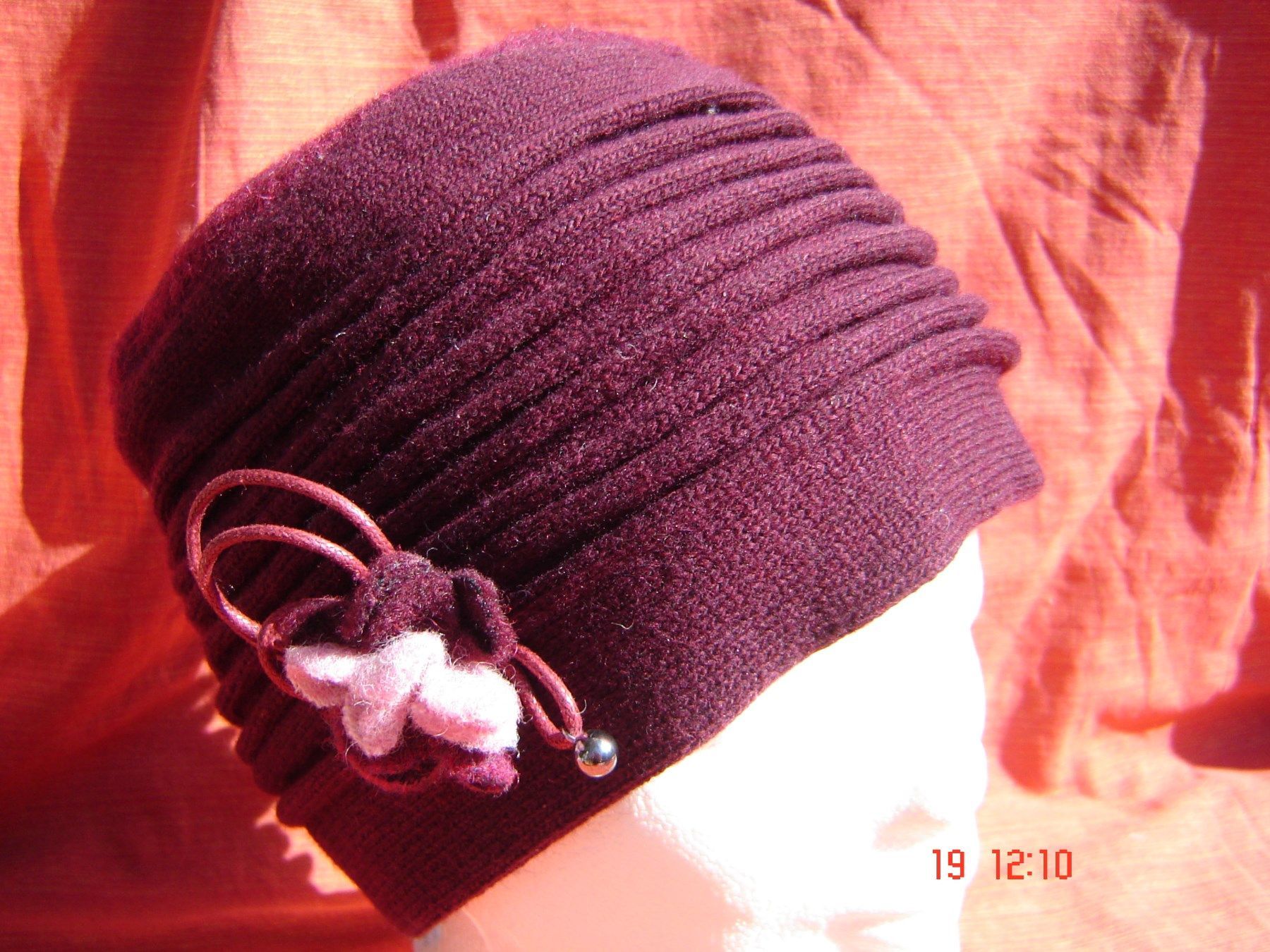 . . kuschlig warme Wintermütze schöne dekorative Walkmütze mit Strick als Toque gearbeitet mit einer Walkblüte und Deko mit weichem Microfleece Futter 100% Polyester sehr weiche Qualität aus 80% Wolle 20% Polyamid problemlose Handwäsche in Farbe weinrot ausgezeichnete Verarbeitung Größe passend für