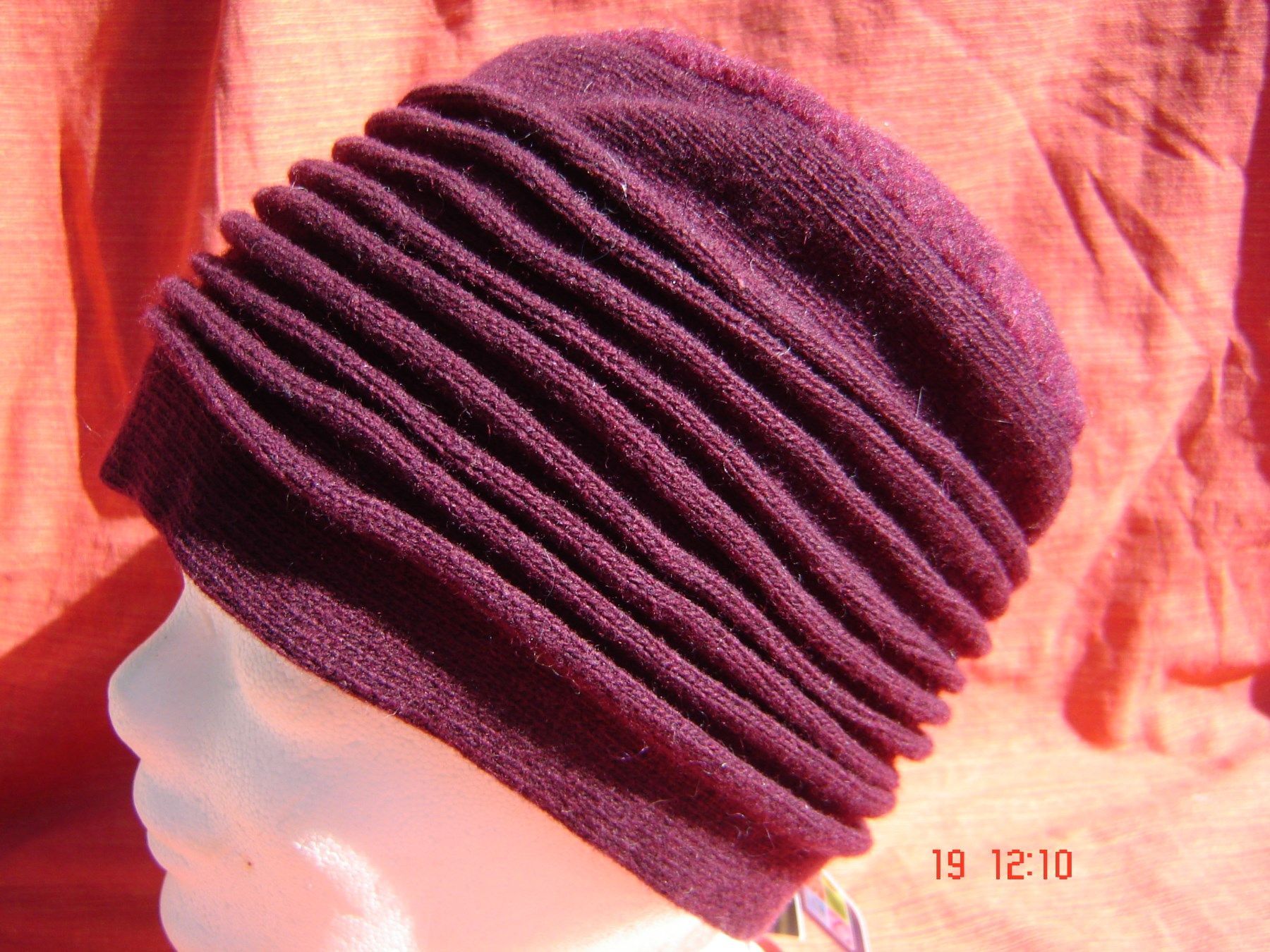 weiche Walkmütze Walk u Strick gerade Toque m Walkblüte Farbe weinrot Fleecefutter D2