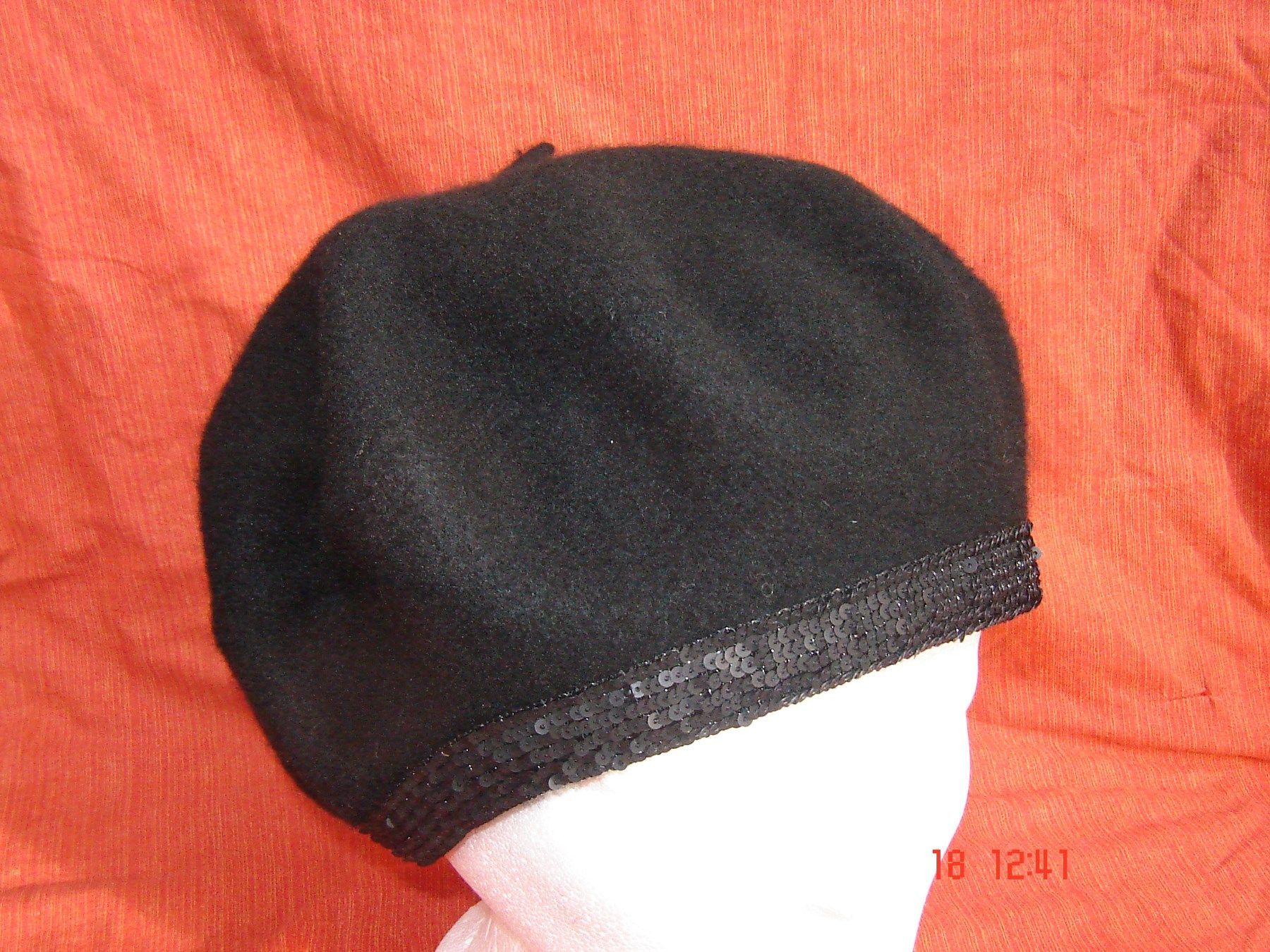 weiche Walkmütze Walkstrick Baskenmütze m Paillettenband schwarz Marzi D2