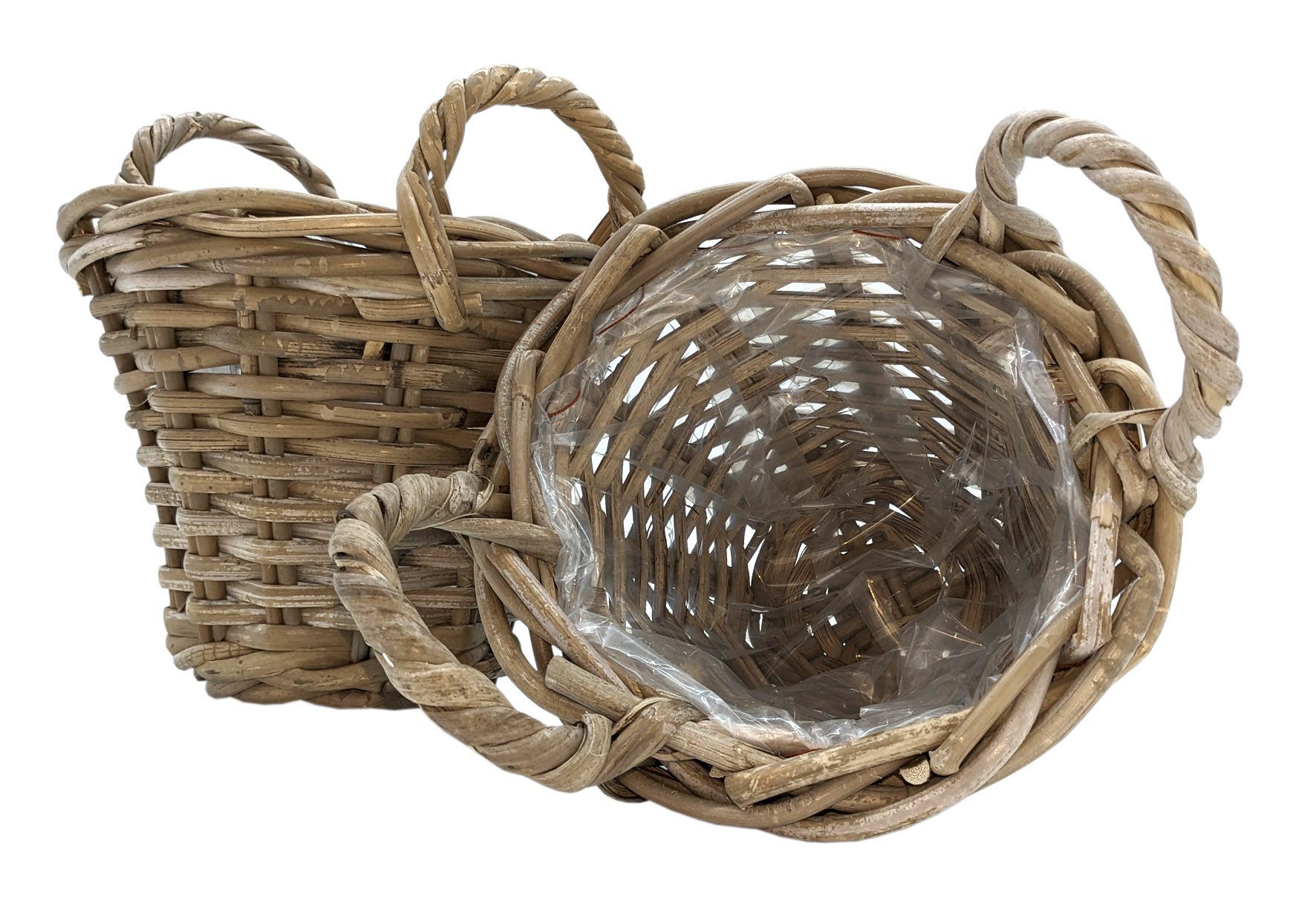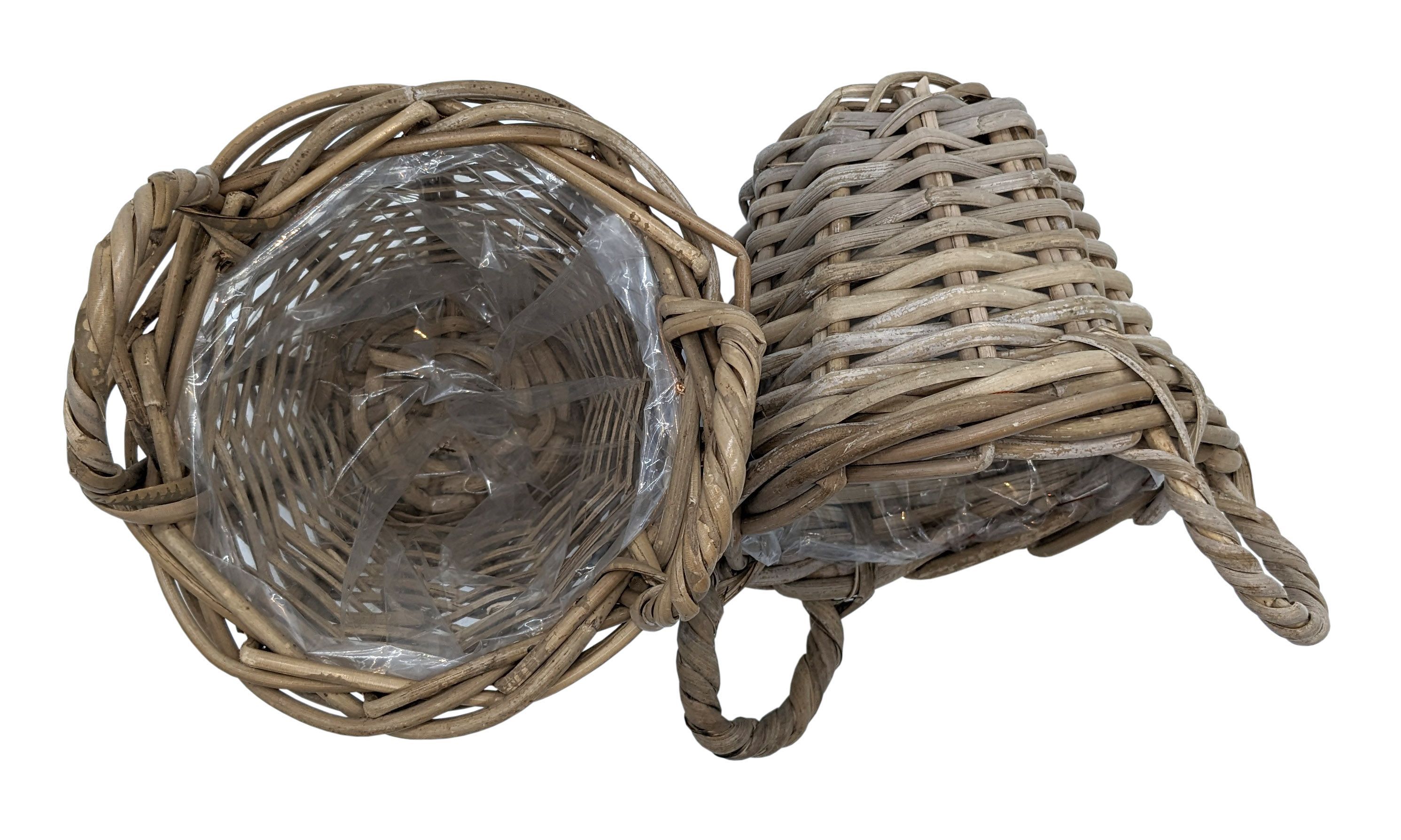 Weide Pflanz Korb 2er Set grau - 20 cm / mini - Natur Garten Deko Rattan Blumen Topf