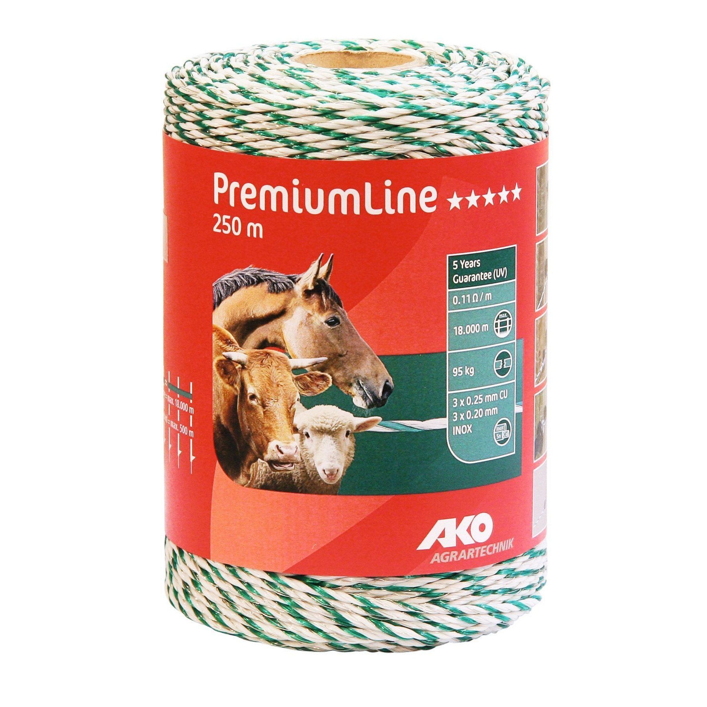 AKO Weidezaunlitze PremiumLine, wei?/gr?n, 0,11 Ohm/m, ? 3mm, 250 m