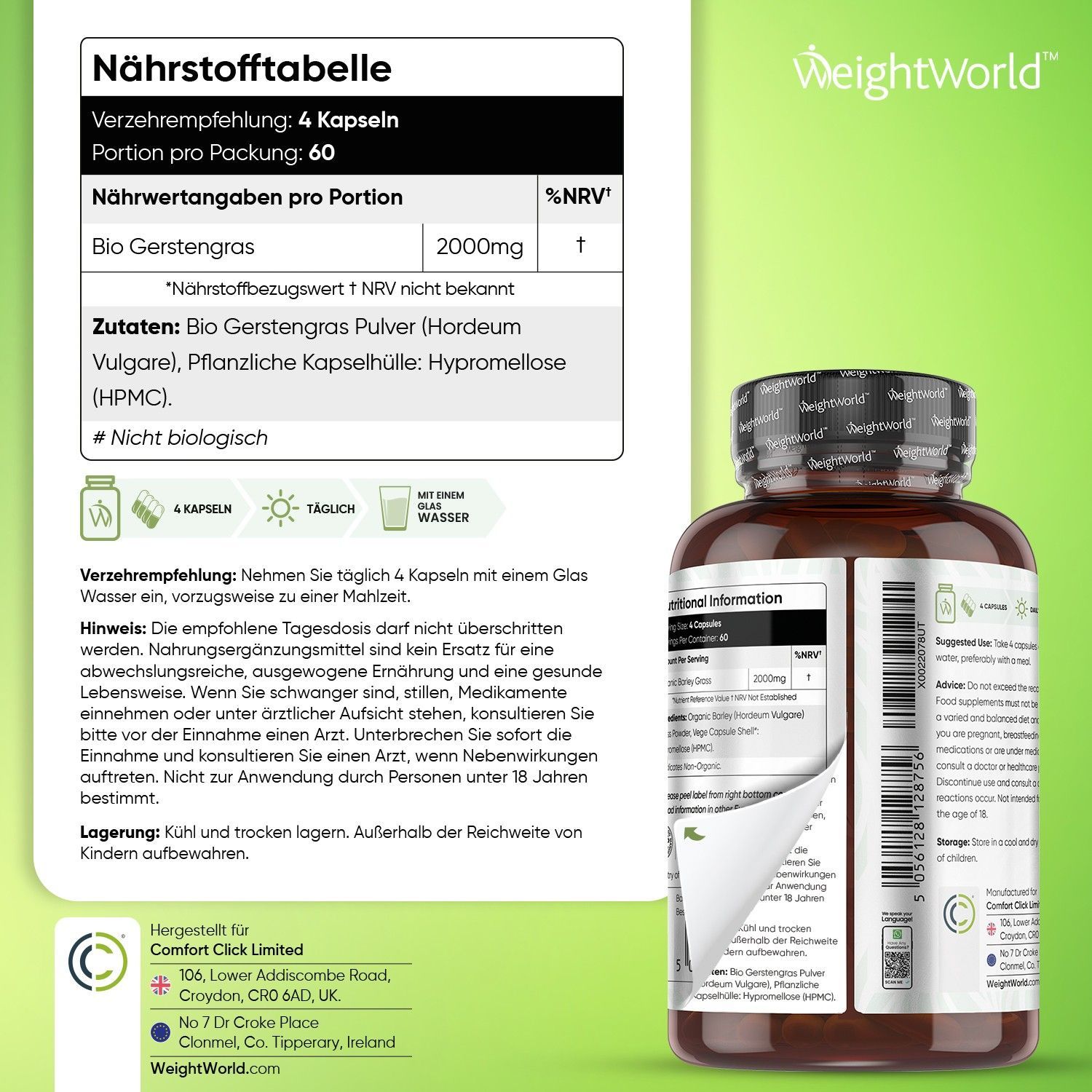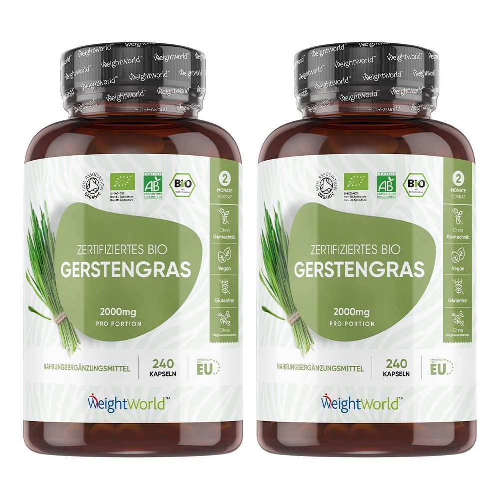 WeightWorld Bio Gerstengras Kapseln - 2000mg pro Tagesdosis -240 Kapseln- 2 PACK