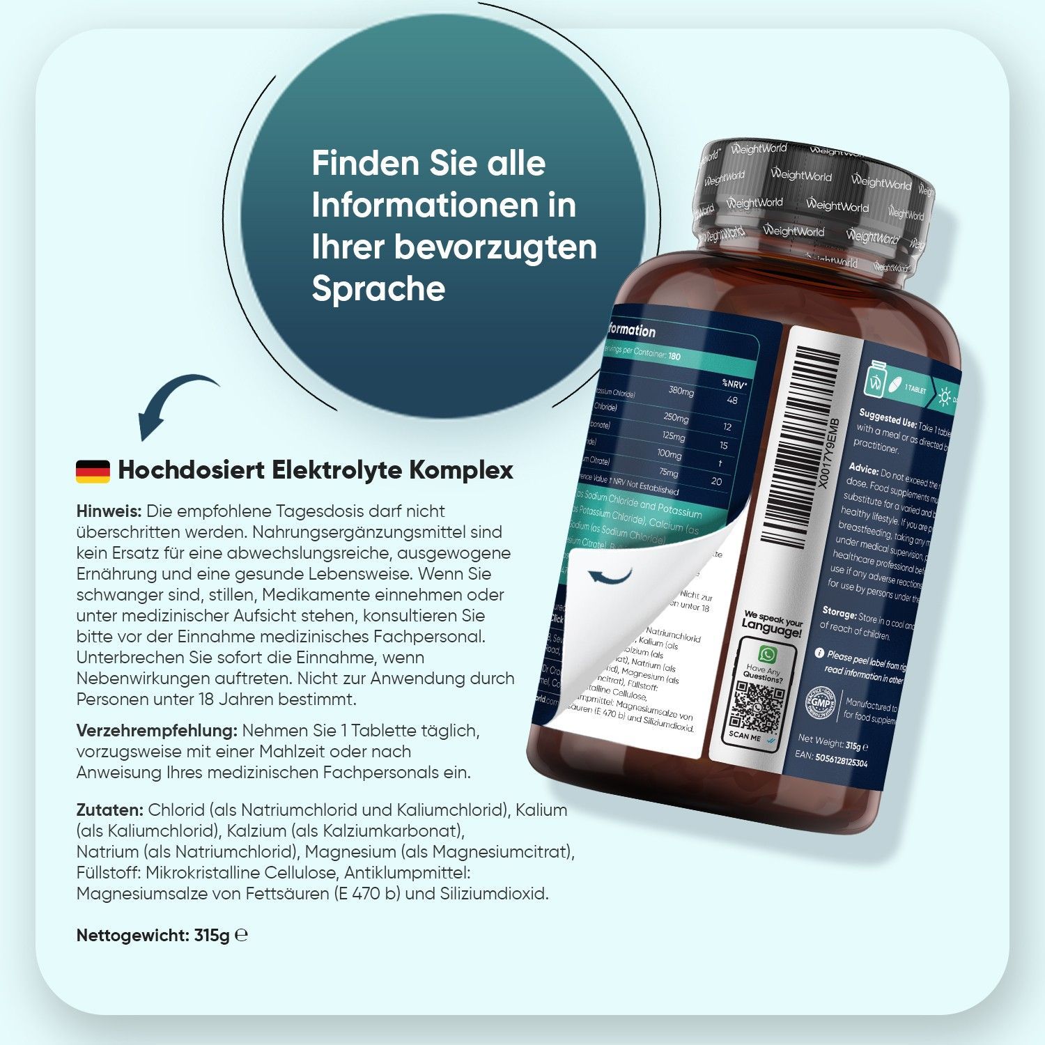 WeightWorld Elektrolyte Tabletten -180 vegane Tabletten - 3 Flaschen