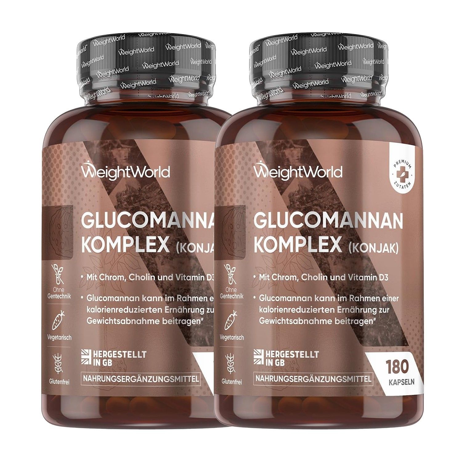 WeightWorld Glucomannan Kapseln 3540mg - 180 Vegetarische Kapseln - 2er-Pack