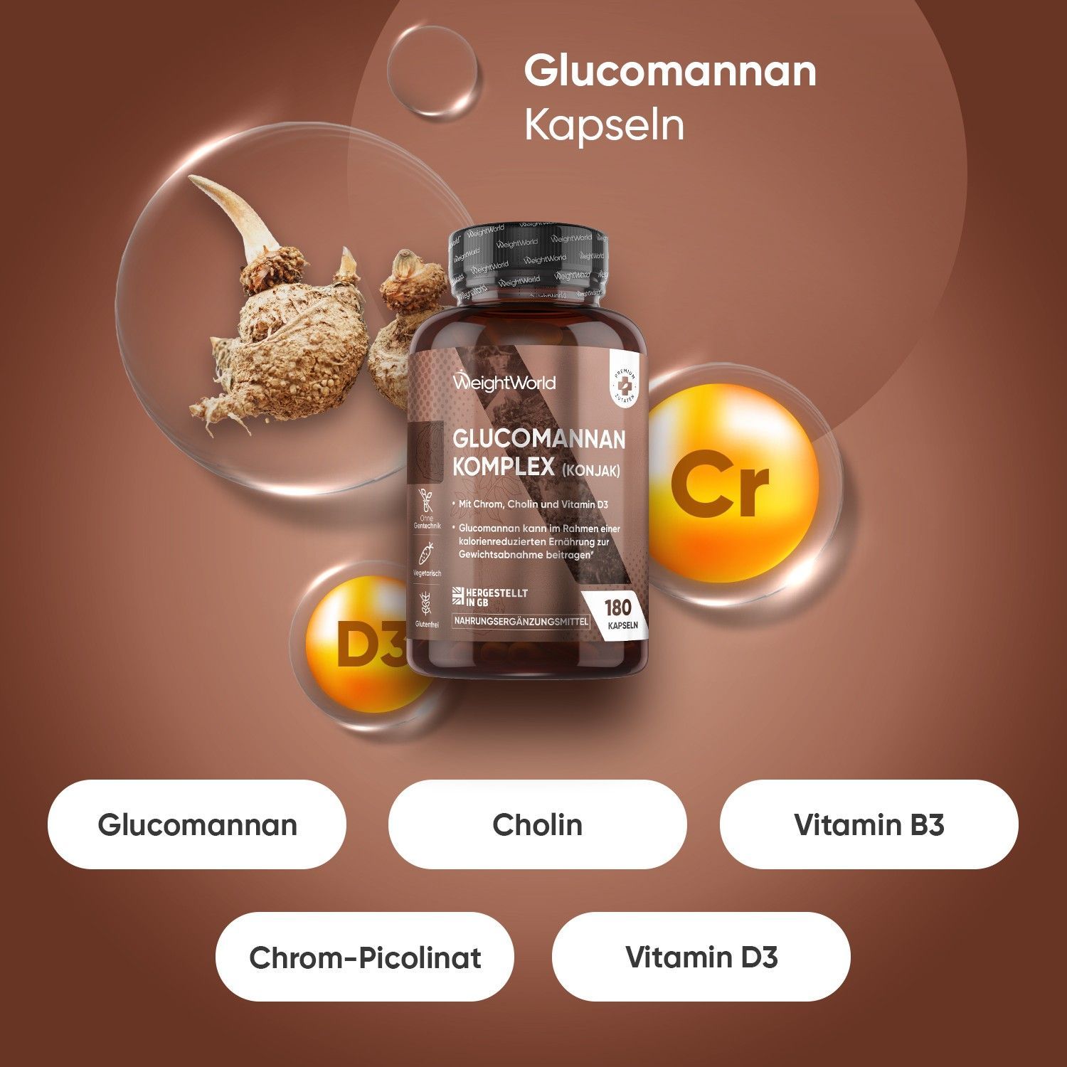WeightWorld Glucomannan Kapseln 3540mg - 180 Vegetarische Kapseln - 3er-Pack