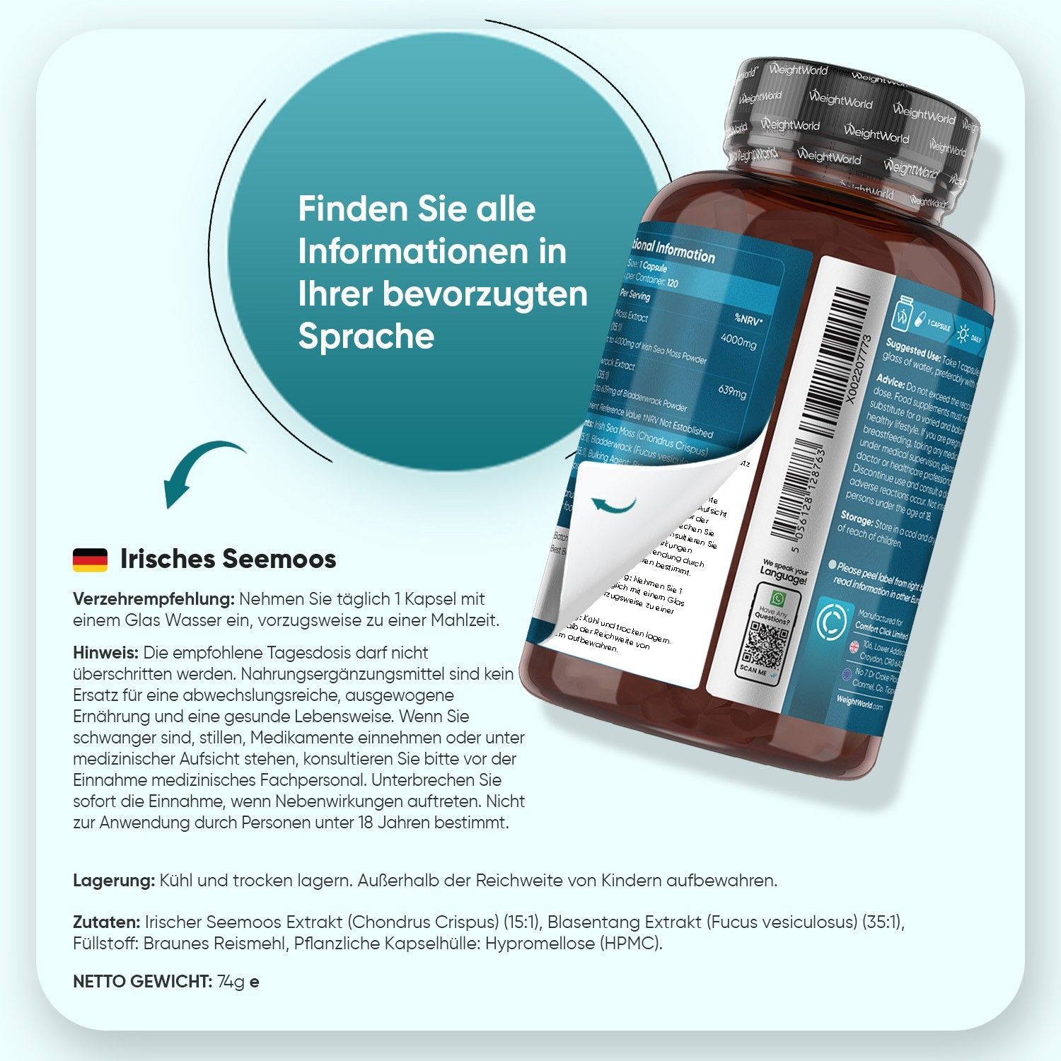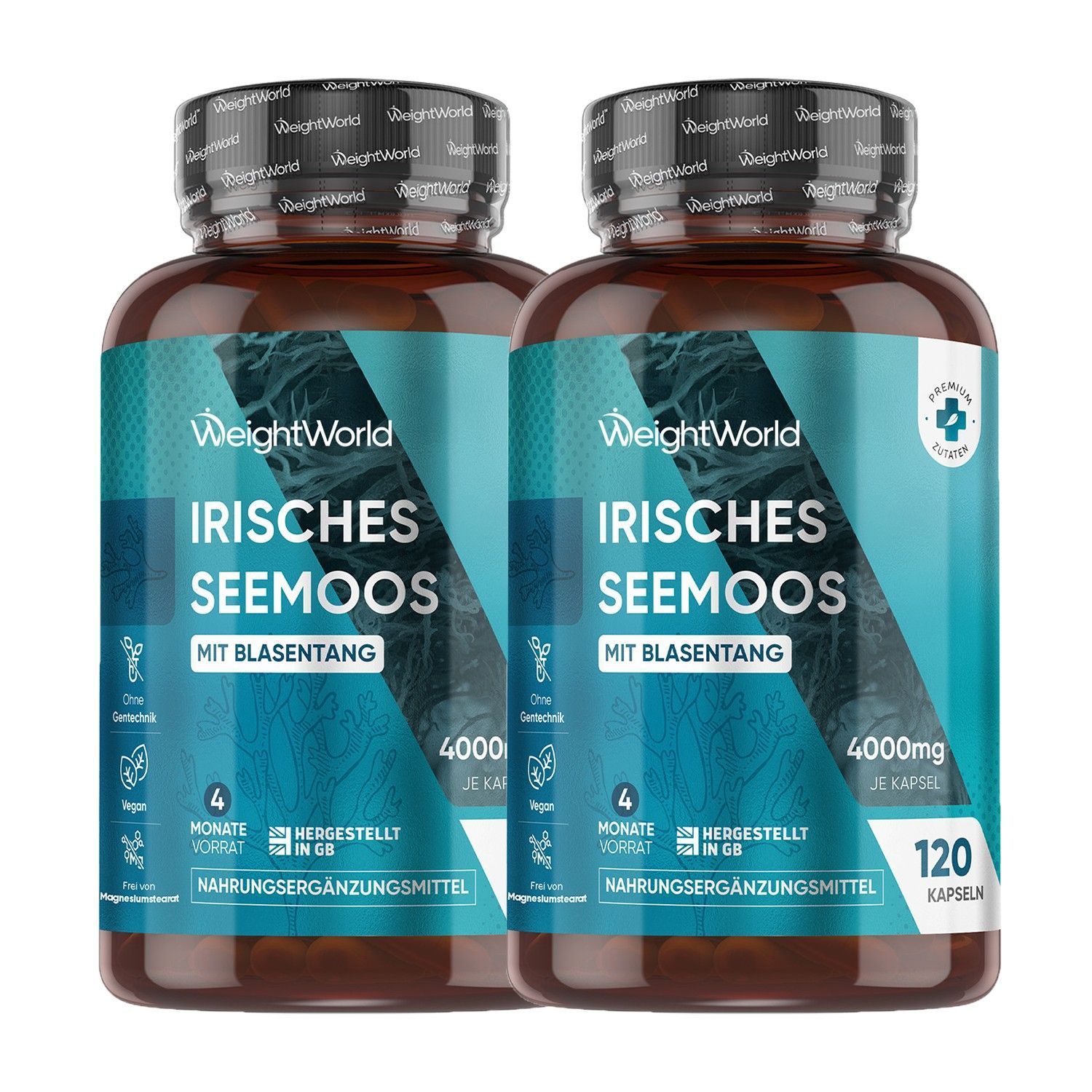 WeightWorld Irisches Sea Moss 4000 mg - 120 Kapseln mit Blasentang - 2 Pack
