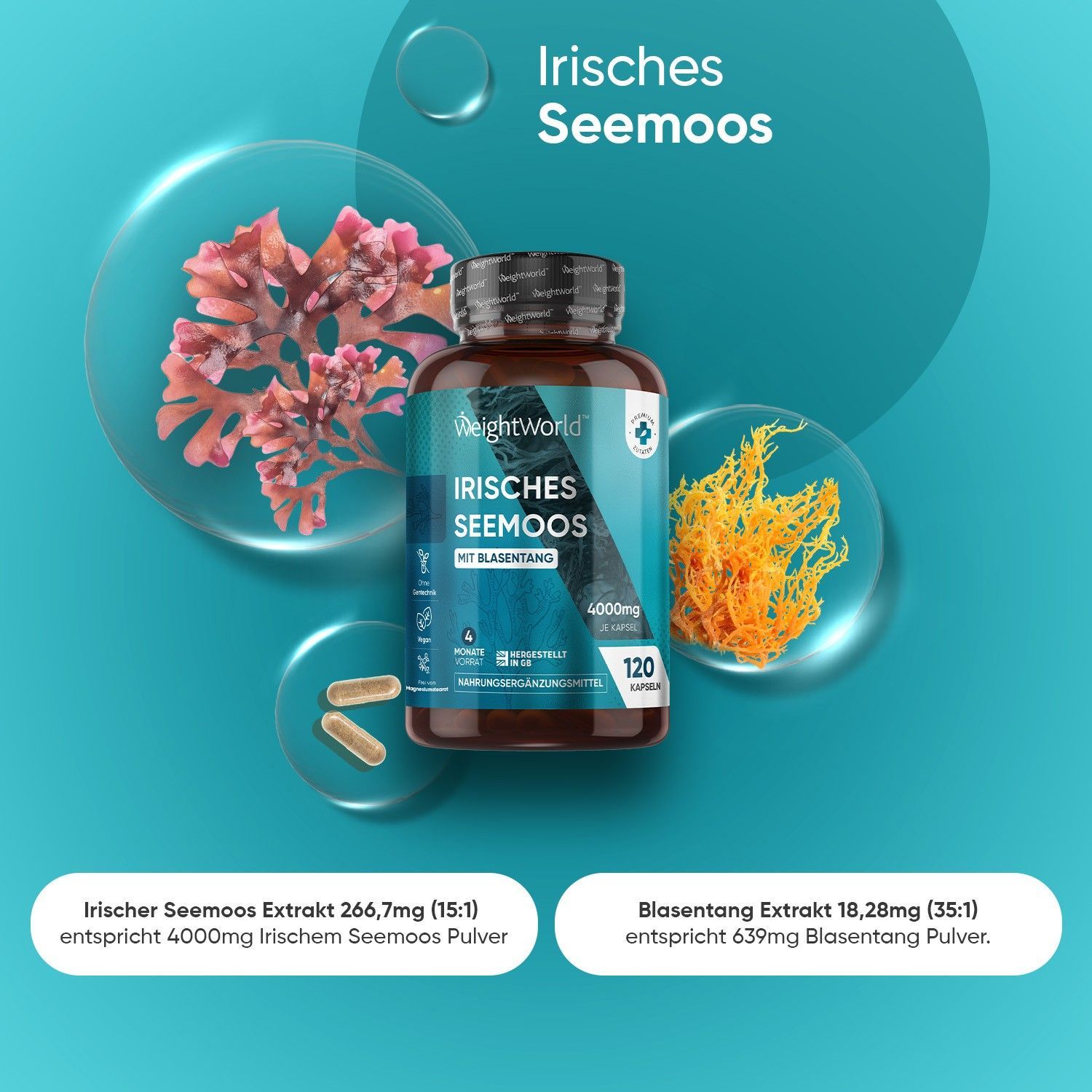 WeightWorld Irisches Sea Moss 4000 mg - 120 Kapseln mit Blasentang - 4 Monate Vorrat