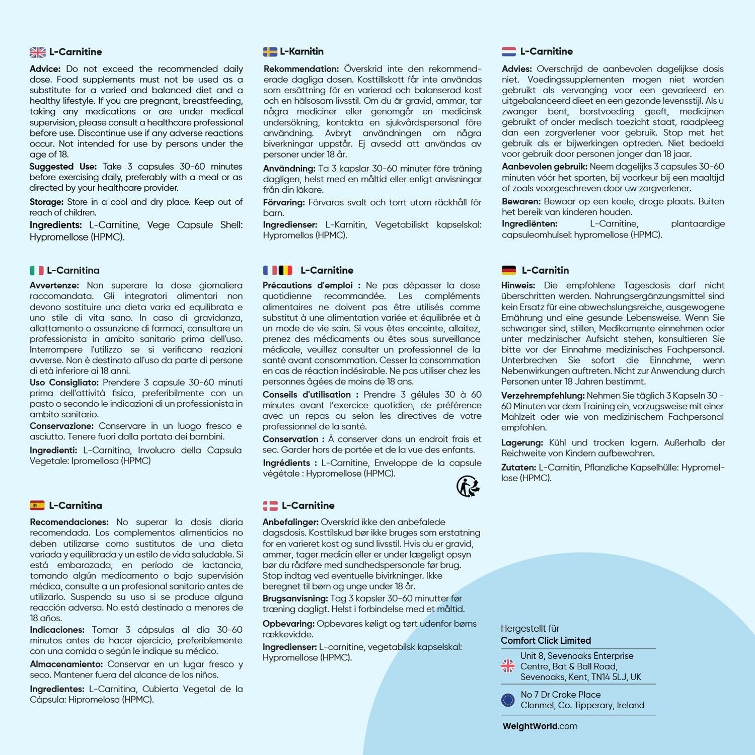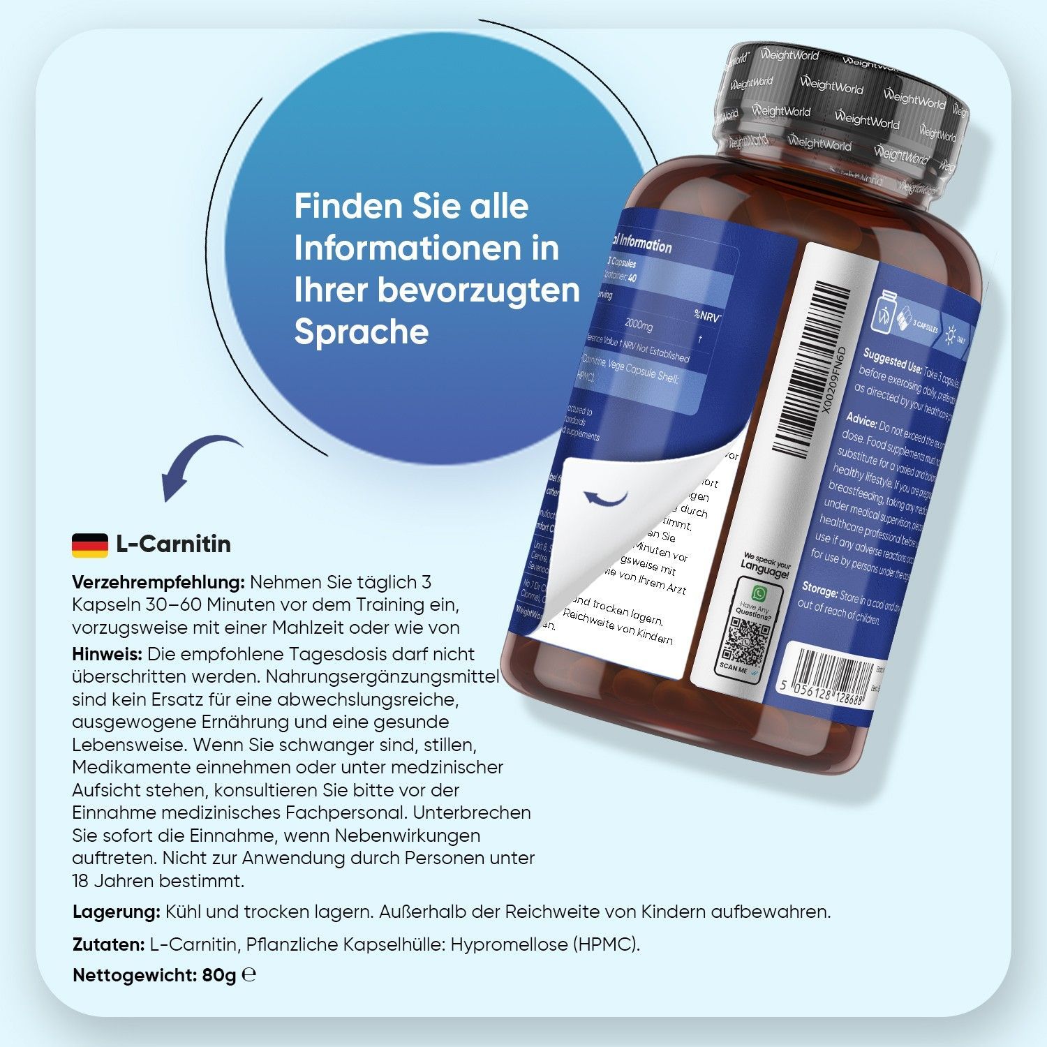 WeightWorld L Carnitin - 2000mg pro Portion - 120 vegane Kapseln