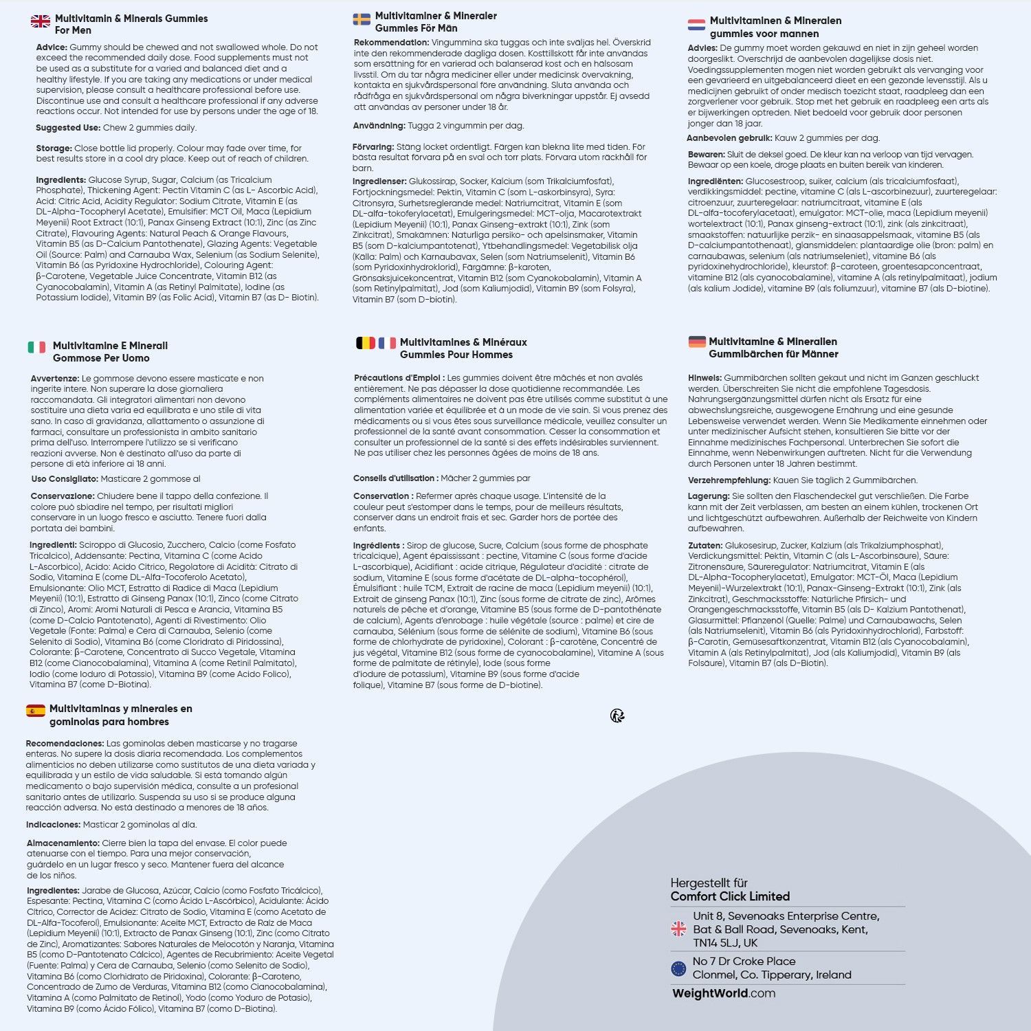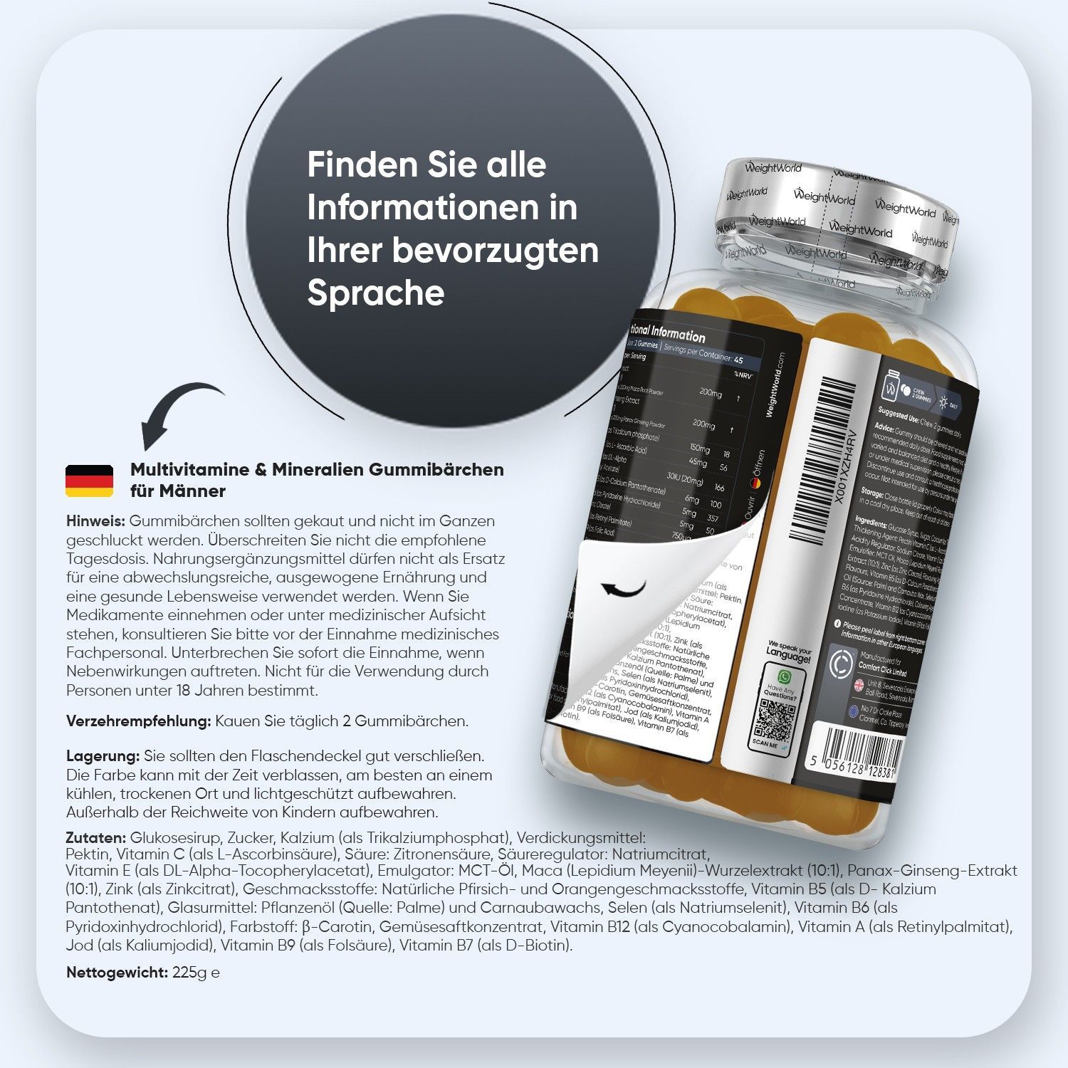 WeightWorld Multivitamin Gummies für Männer- Mit Maca, Zink, Vitamin C, 12, Selen