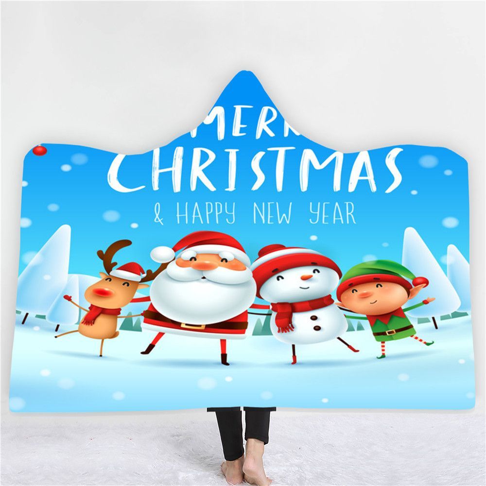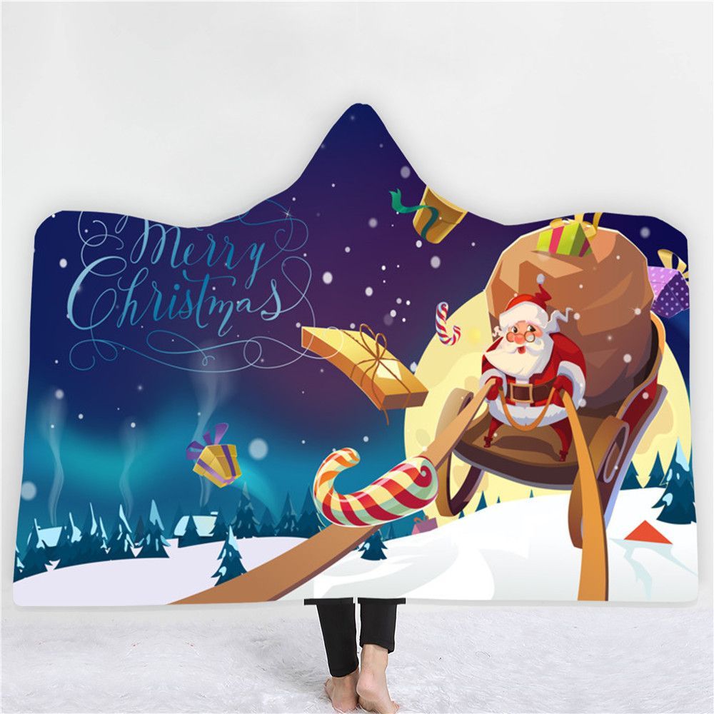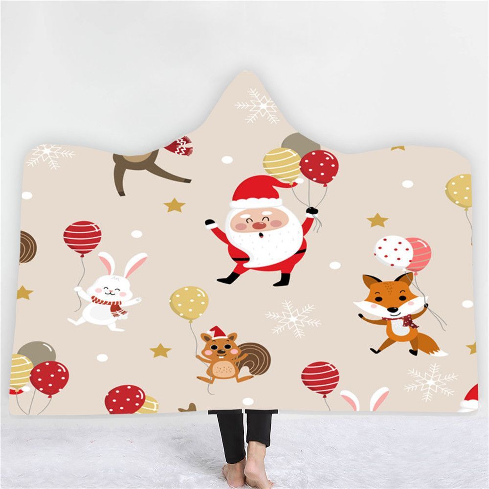 Weihnachten Decke Santa Claus Rentier Hoodie Blanket Fleece Doppeldecker Poncho Cape