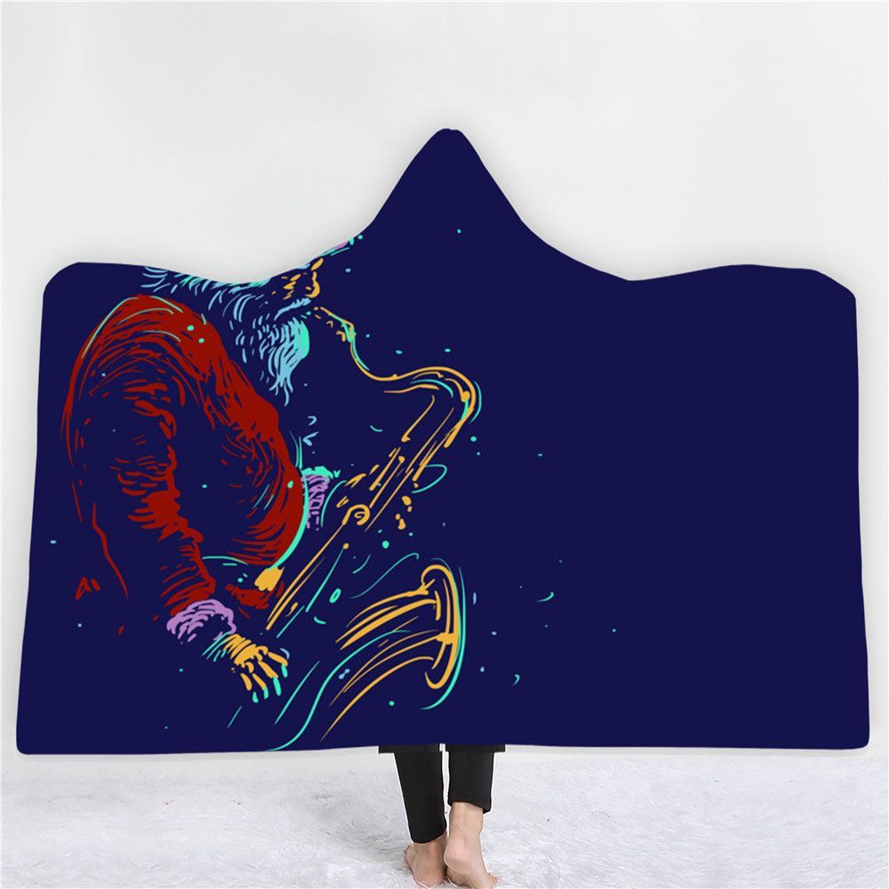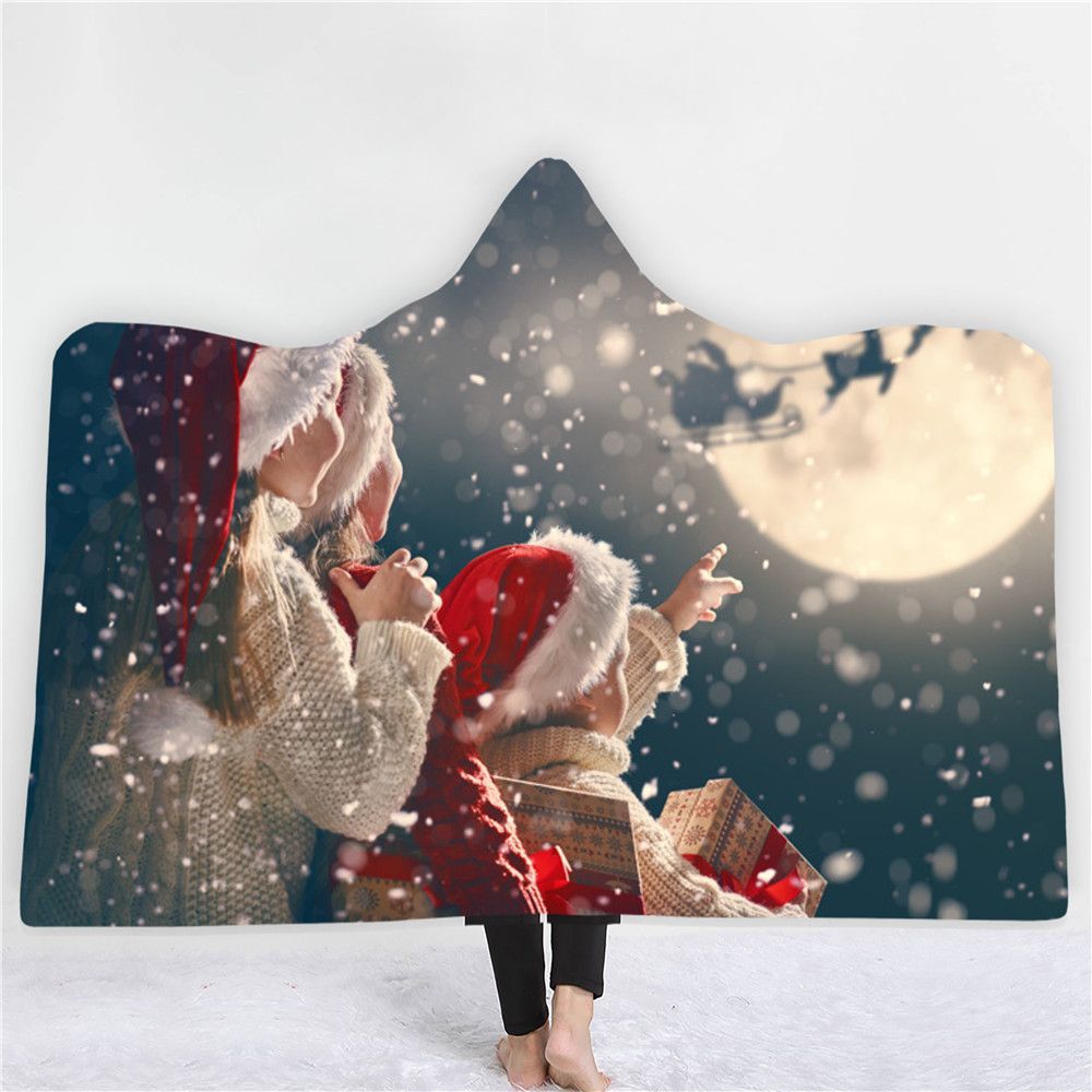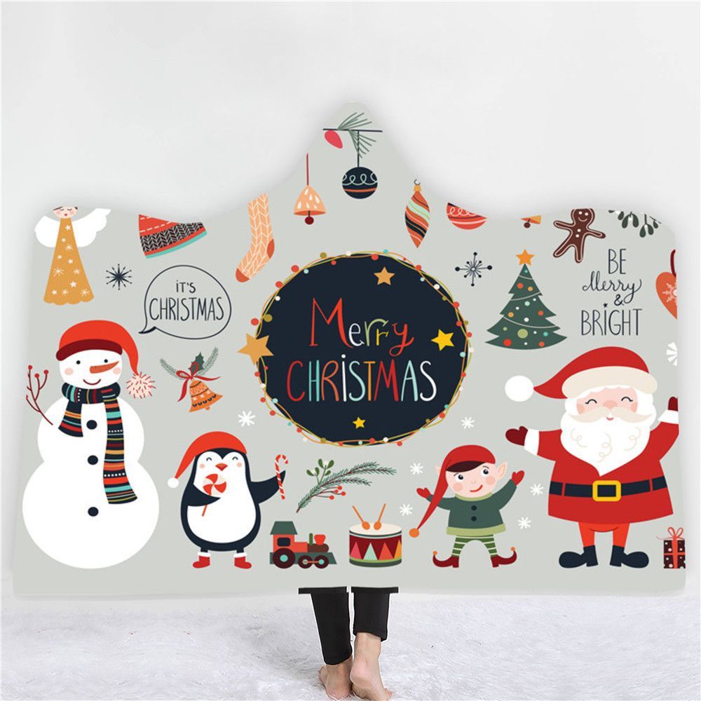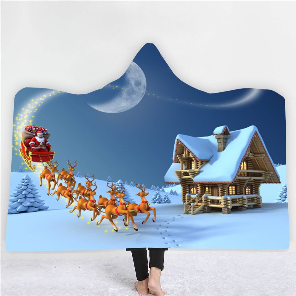 Weihnachten Decke Santa Claus Rentier Hoodie Blanket Fleece Doppeldecker Poncho Cape