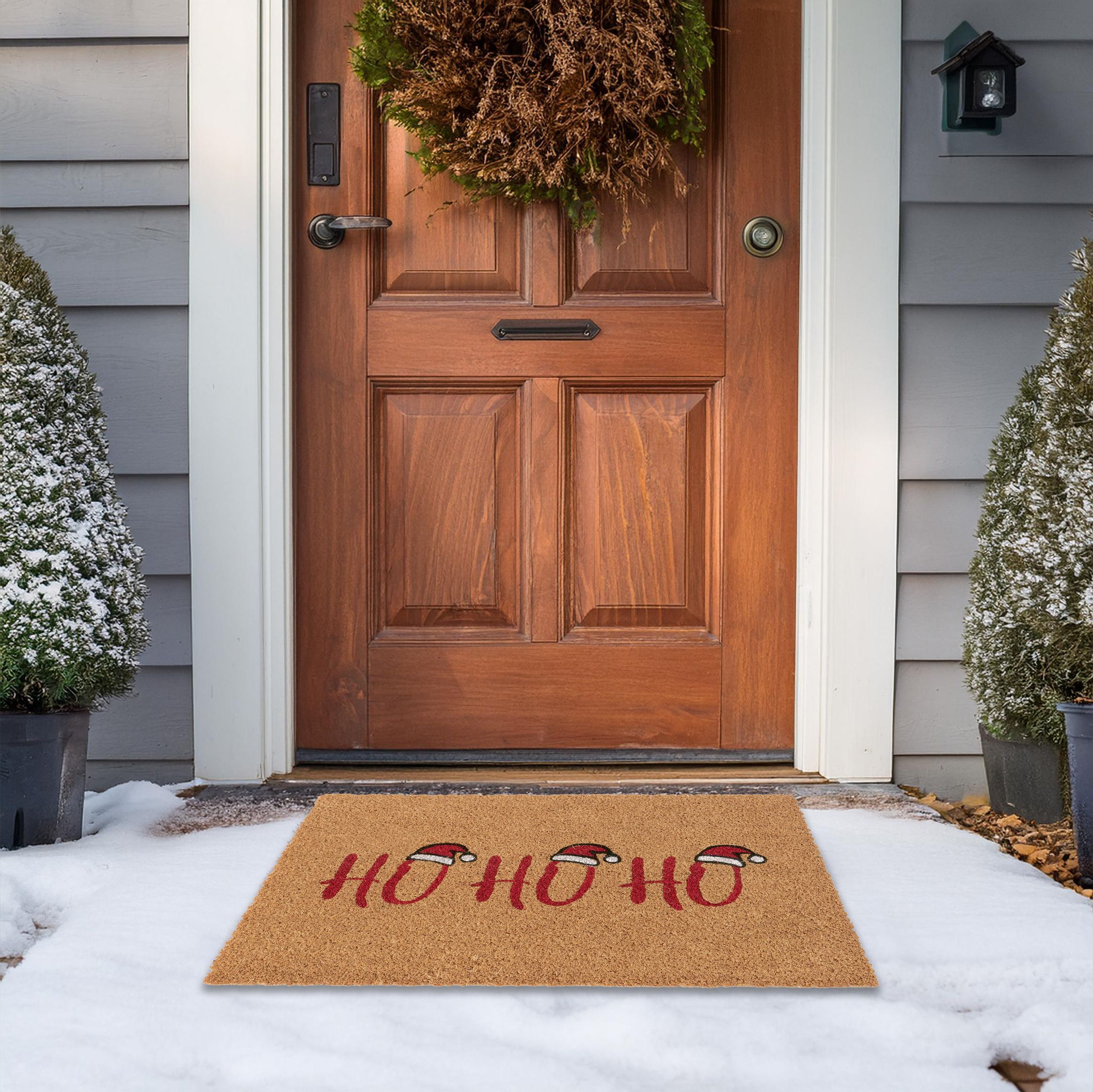 Schmutzfangmatte aus natürlichen Kokosfasern mit Weihnachts Schriftzug HO HO HO ca. 60 x 40 cm