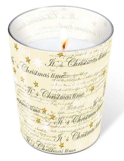 Weihnachten Glaskerze weiß&gold Sterne It´s Christmas time