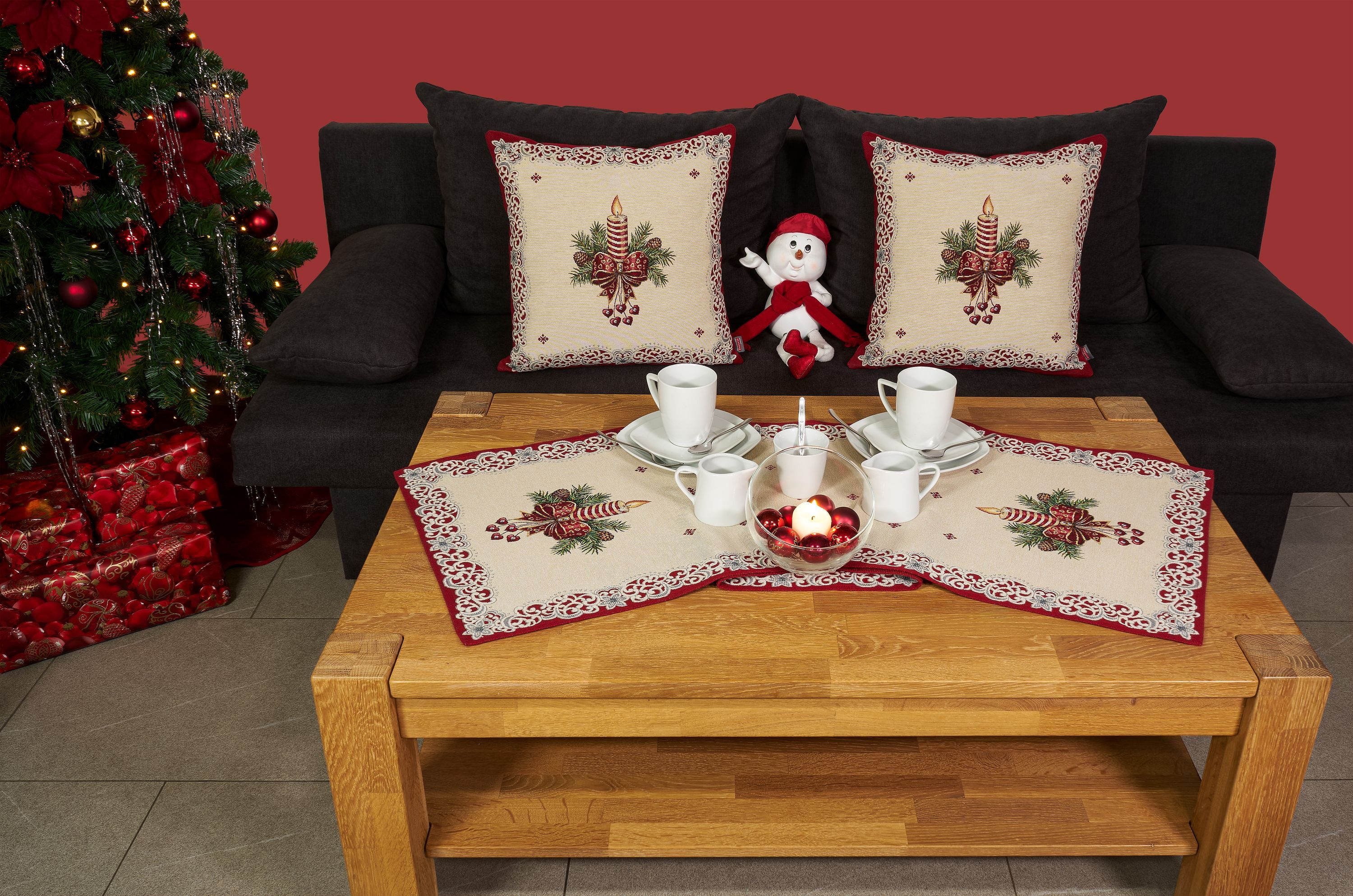 Weihnachten Gobelin Tischdecke Tischläufer Kissenbezug Weihnachtsdekoration Kerze