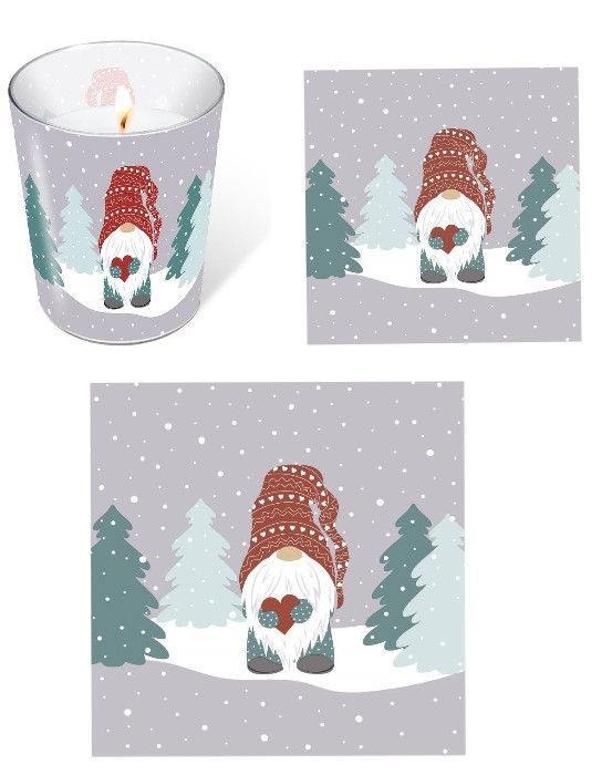 ** Tischdekoration** Set Tomte in the Forest 1 Glaskerze Design , 20 Lucnchserviette und 20 Cocktailserviette Motiv "Tomte in the forest"Set Inhalt 1 Glaskerze Größe 8,5x10cm hoch 1 20 Lunchserviette ca 33x33cm 1 20 Cocktailserviette ca 24x24