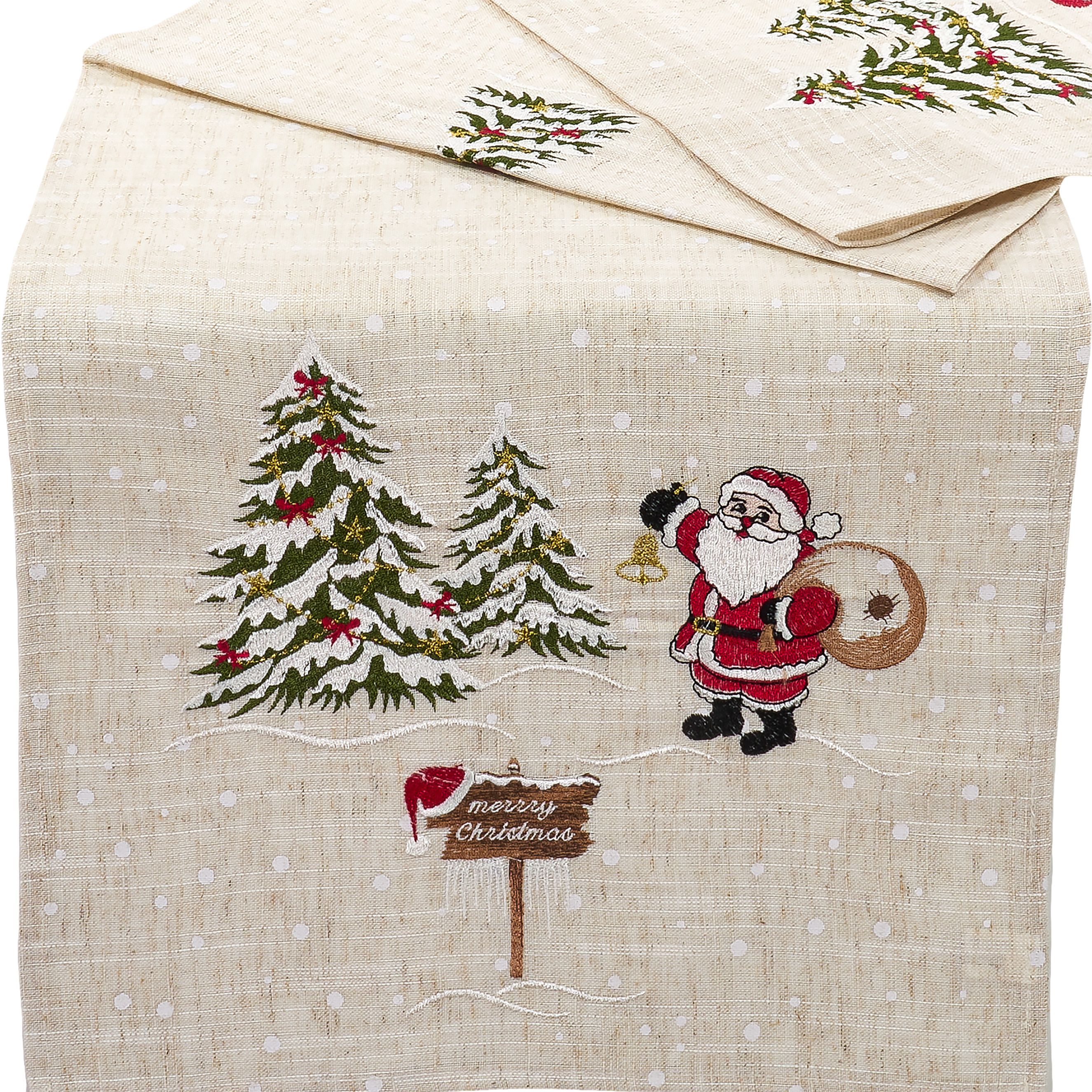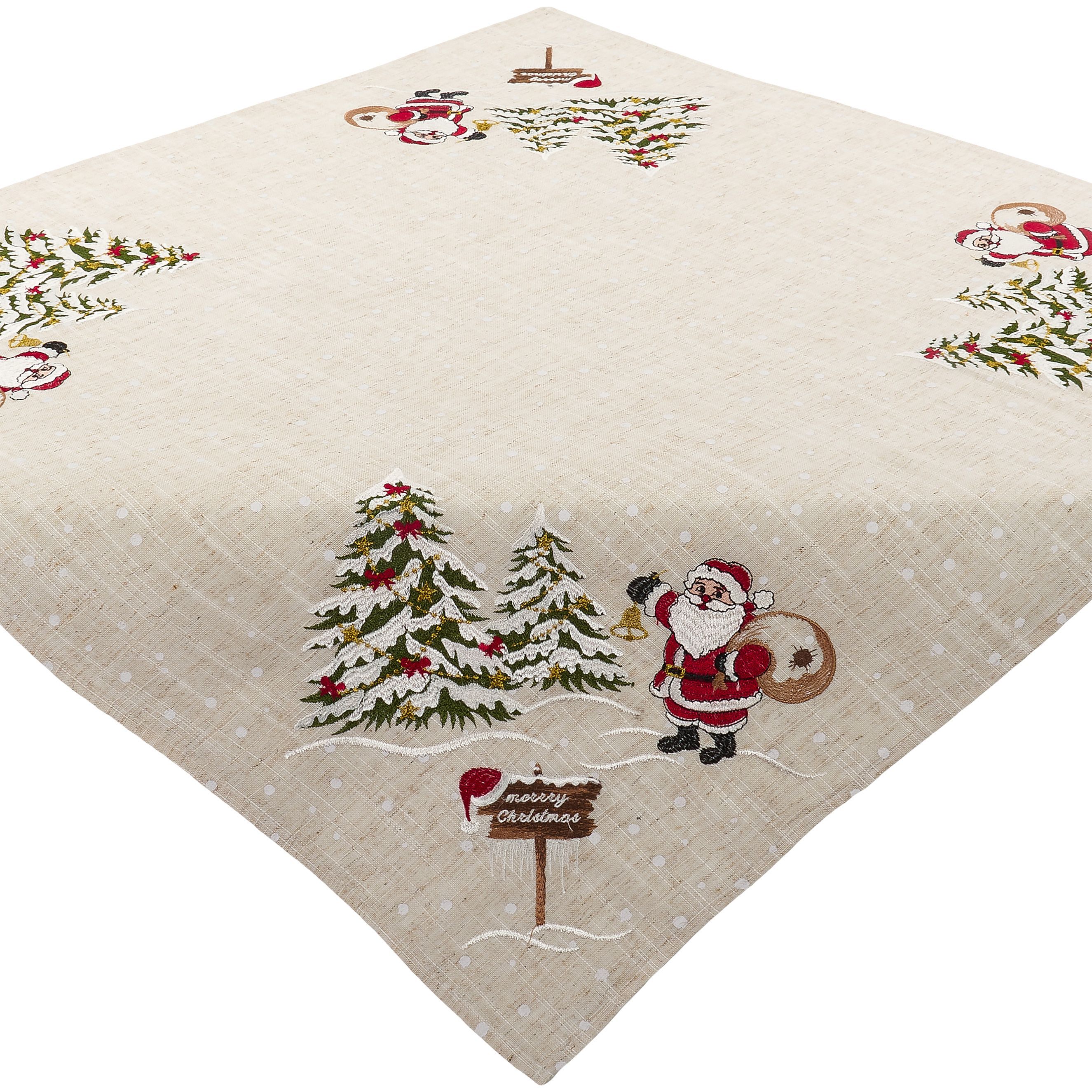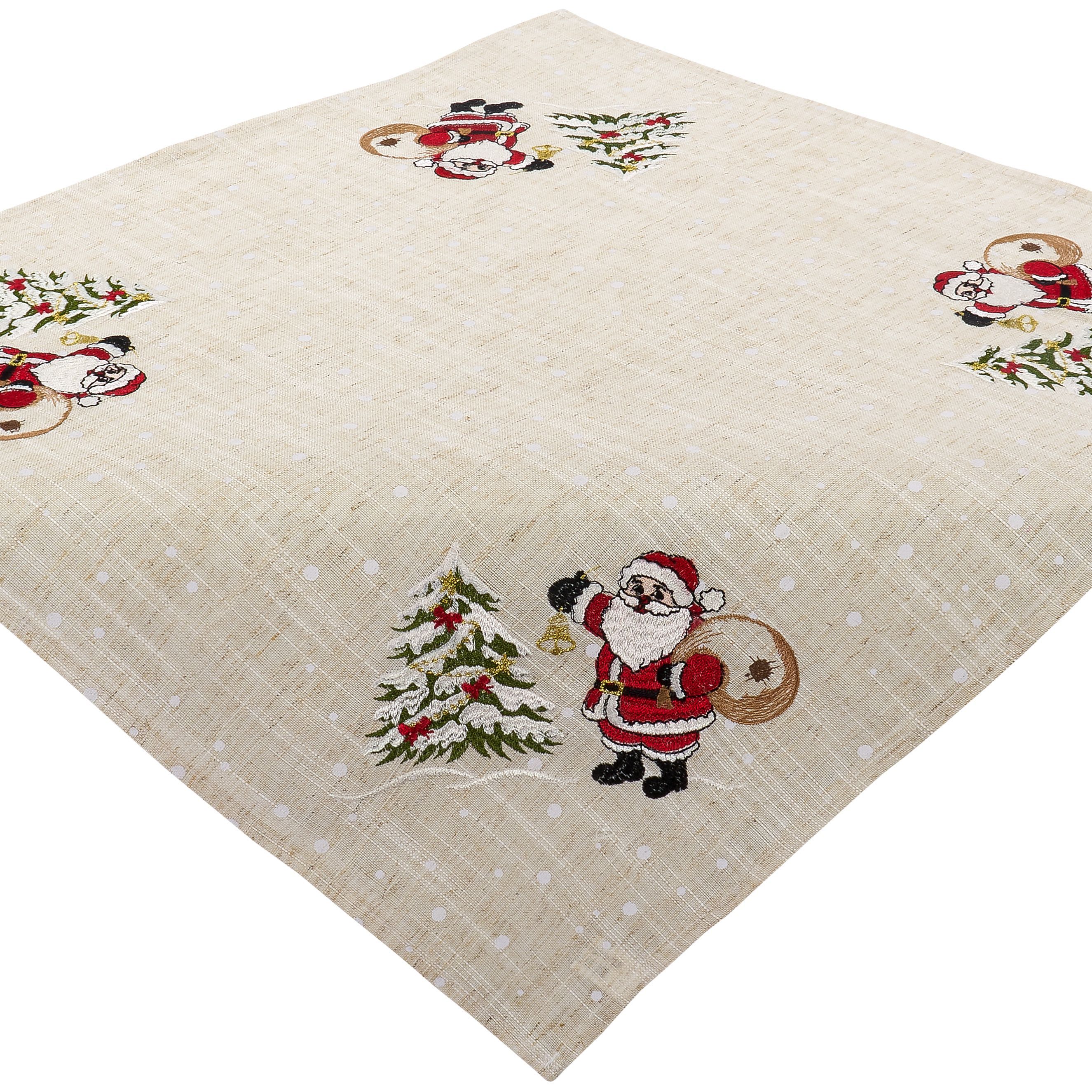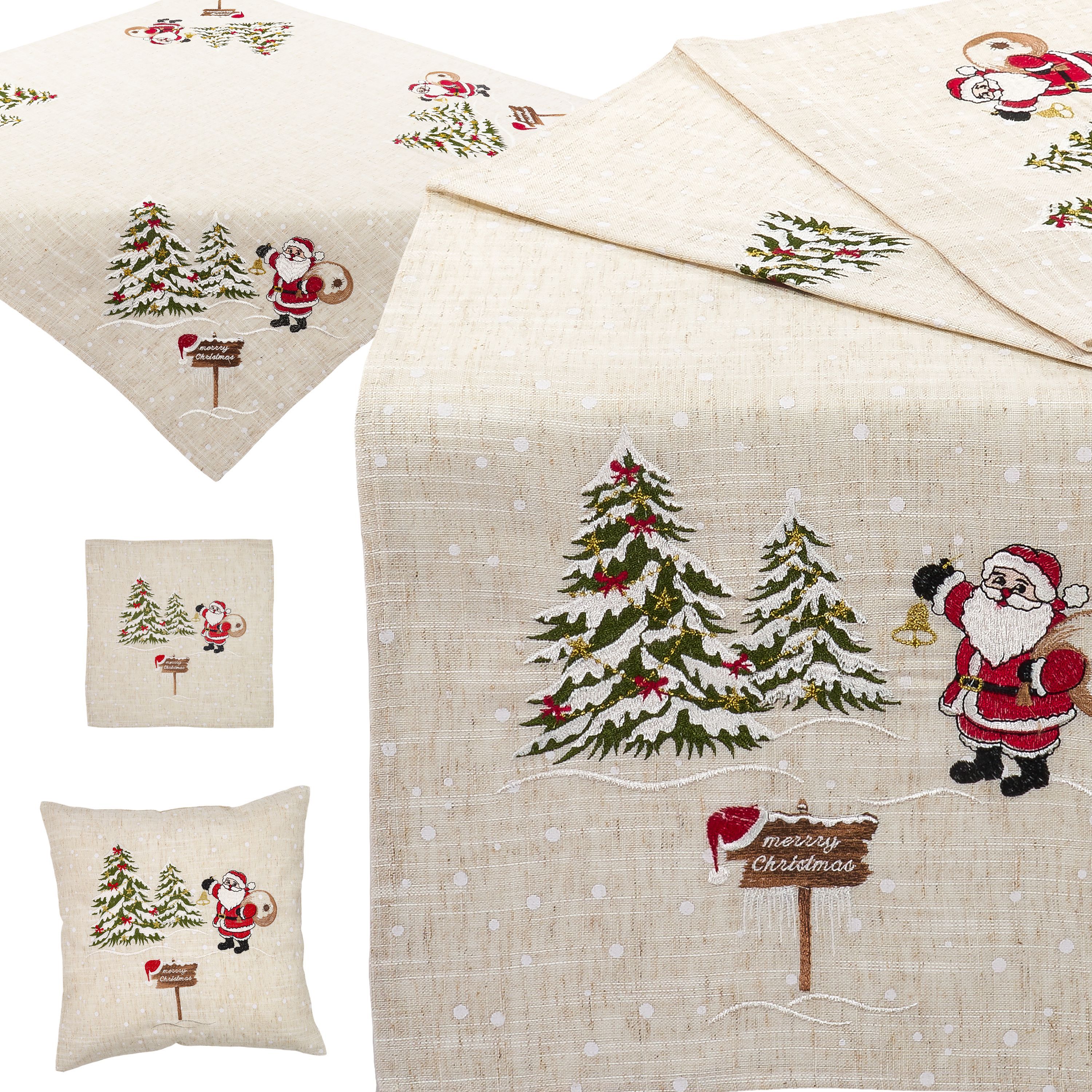 Weihnachten Tischdecke Tischläufer Deckchen Kissenbezug Leinenoptik Beige Santa