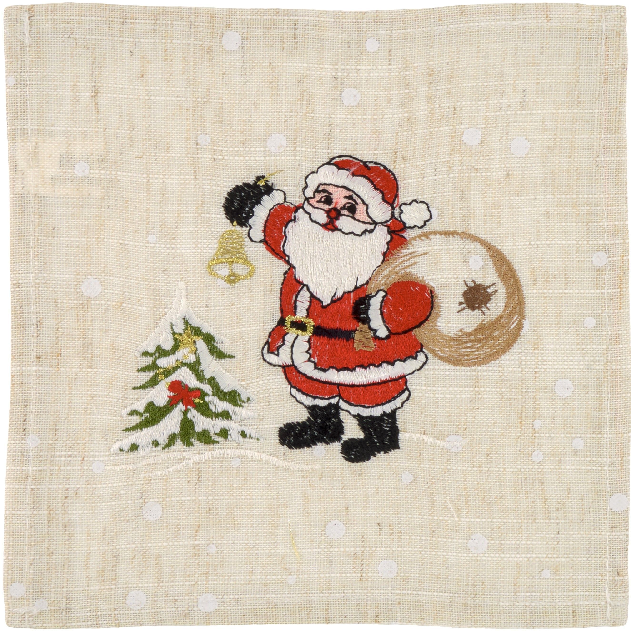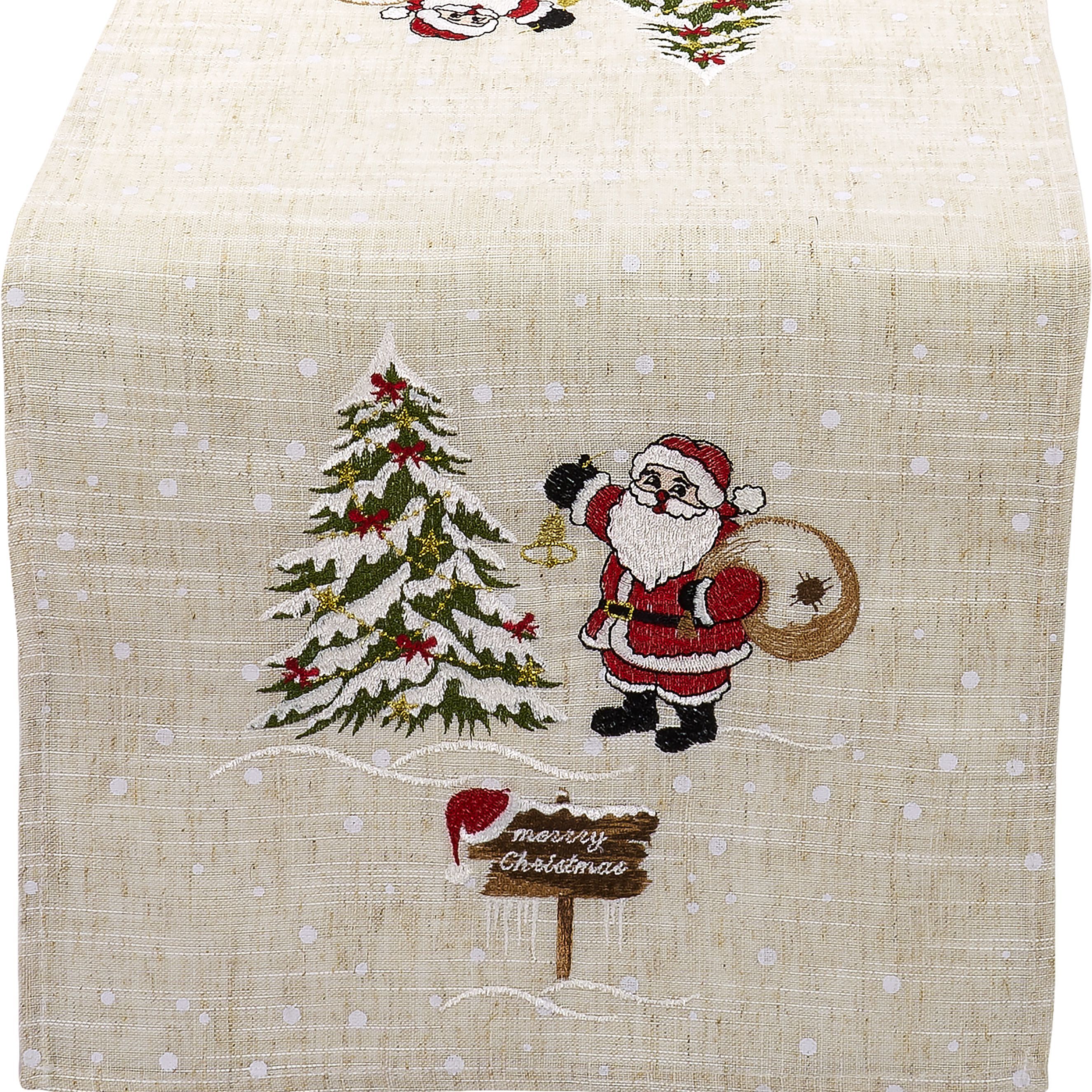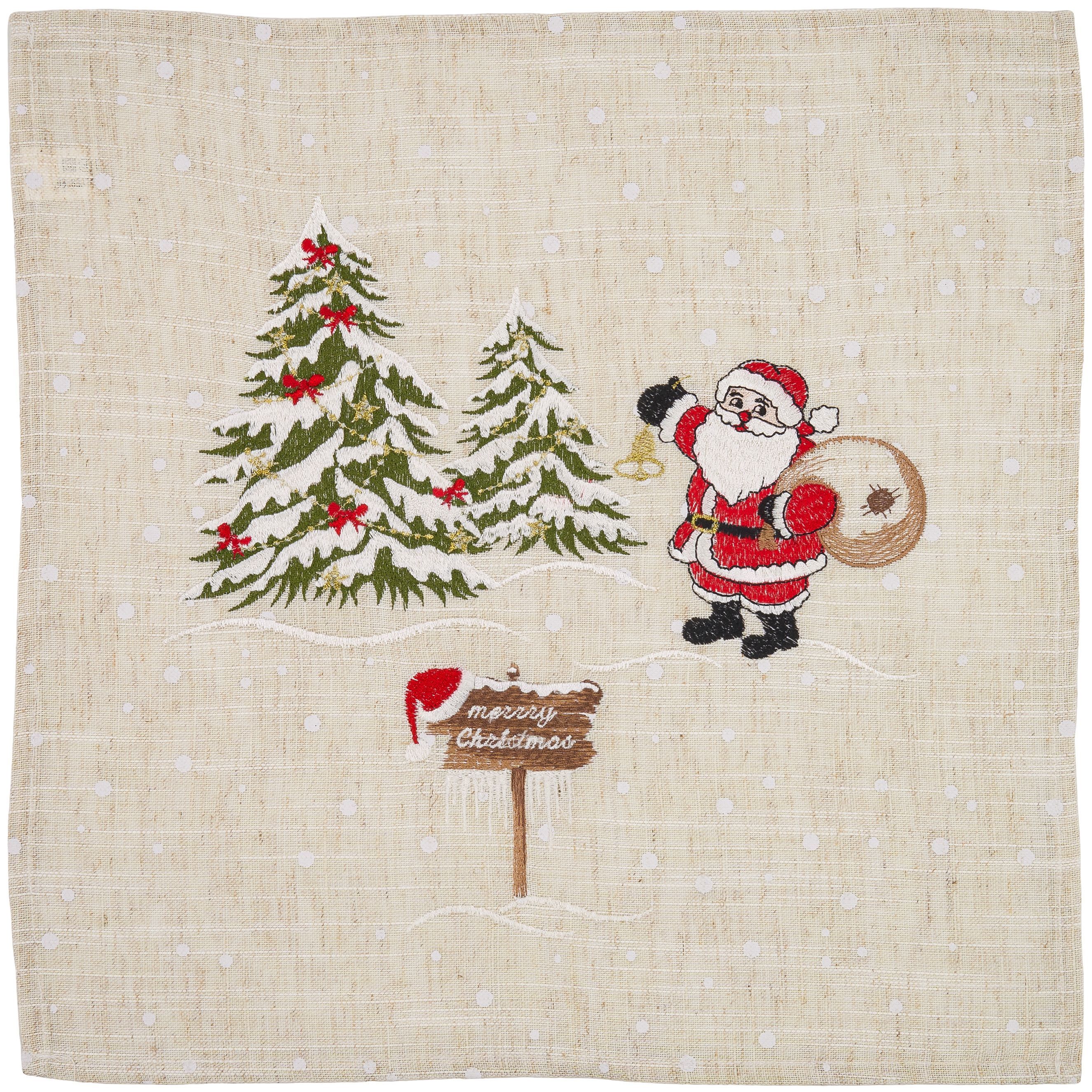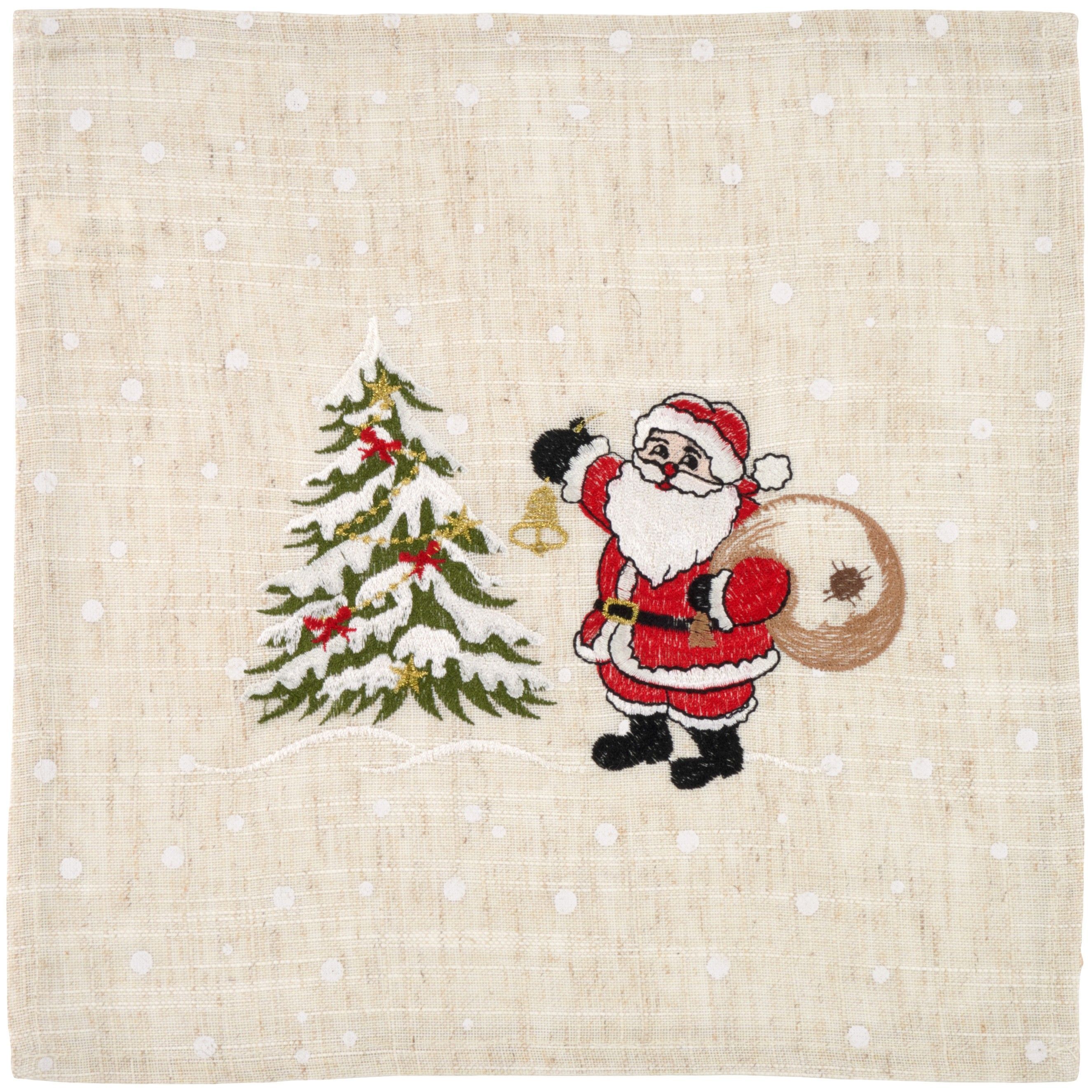 Weihnachten Tischdecke Tischläufer Deckchen Kissenbezug Leinenoptik Beige Santa