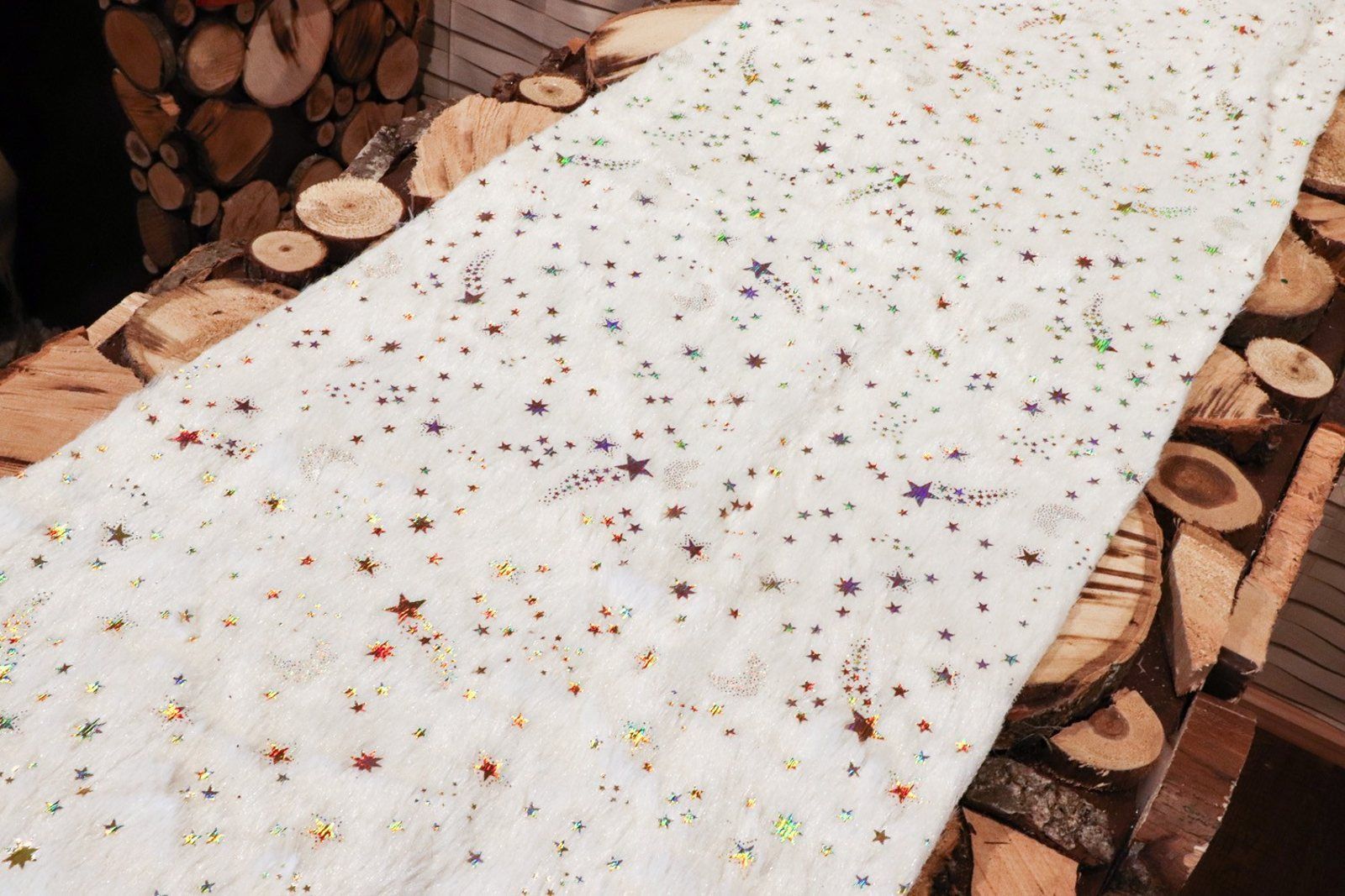 weihnachtlicher Tischläufer Tischdeko Tischband weiß mit Sternen Winter Deko