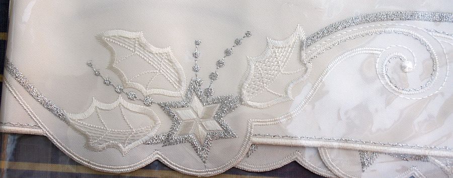 weihnachtliches Satin-Tischband "Stern mit Stechpalme" aus Plauener Spitze