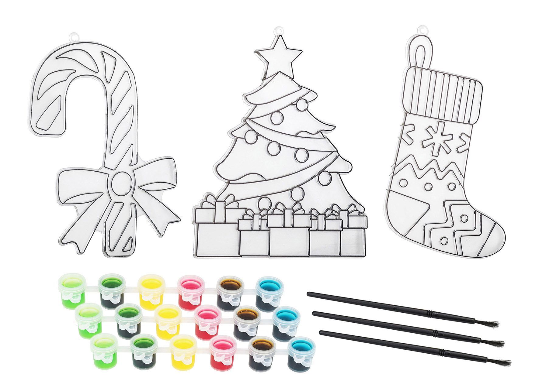 Fensterbilder Malset mit 3 weihnachtlichen Motiven inklusive 18 Farben und 3 Haarpinseln