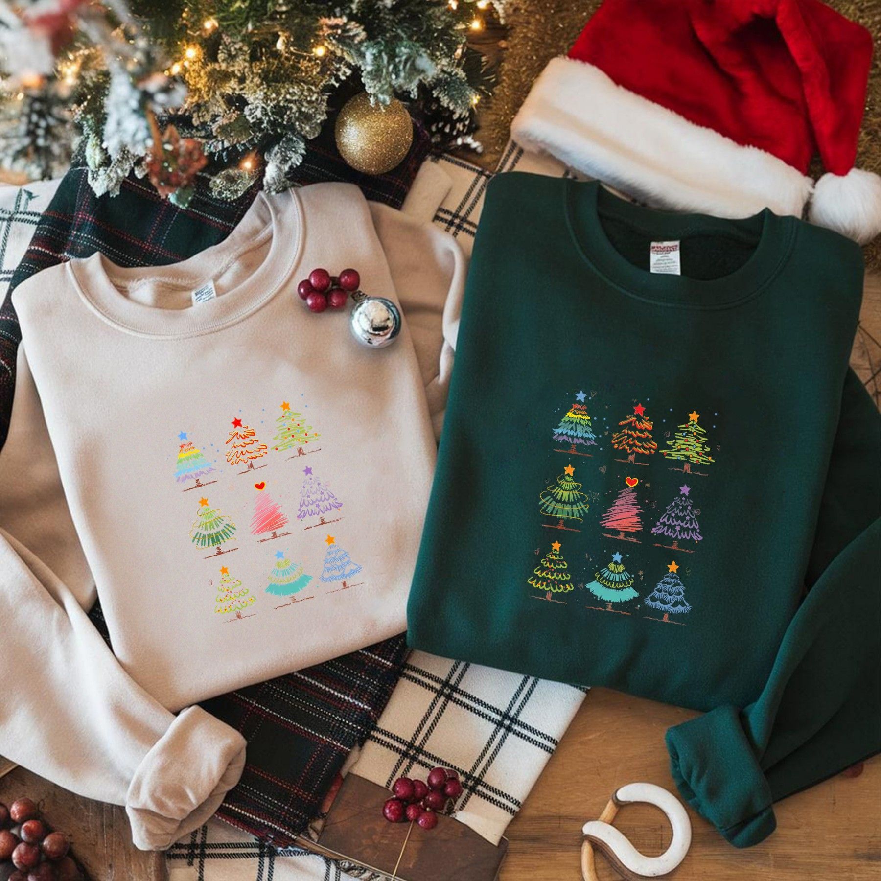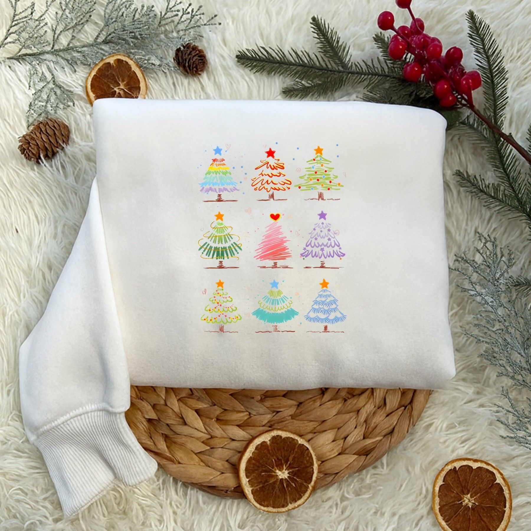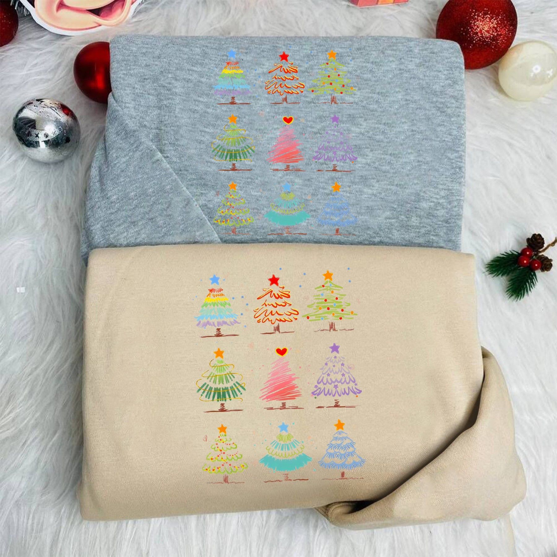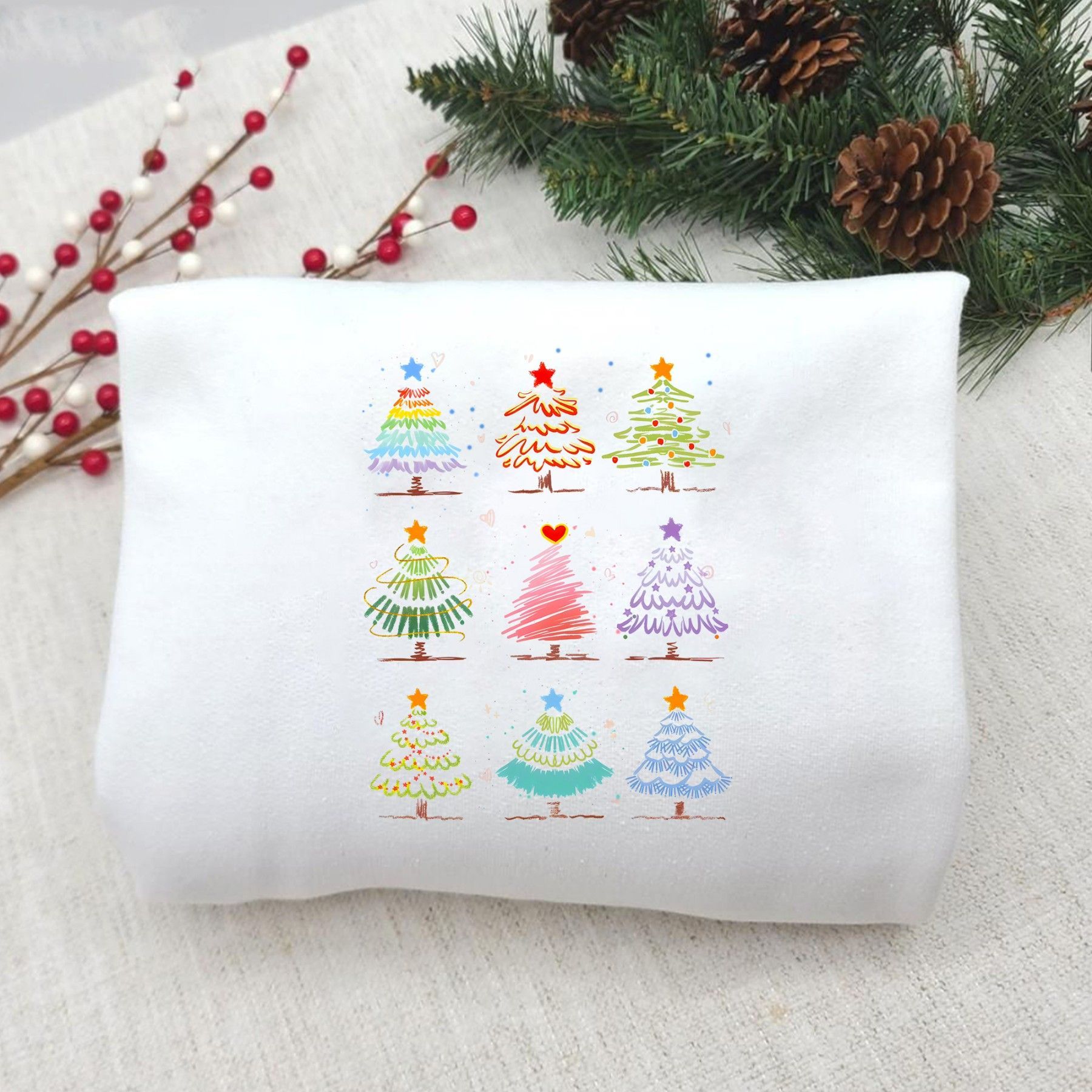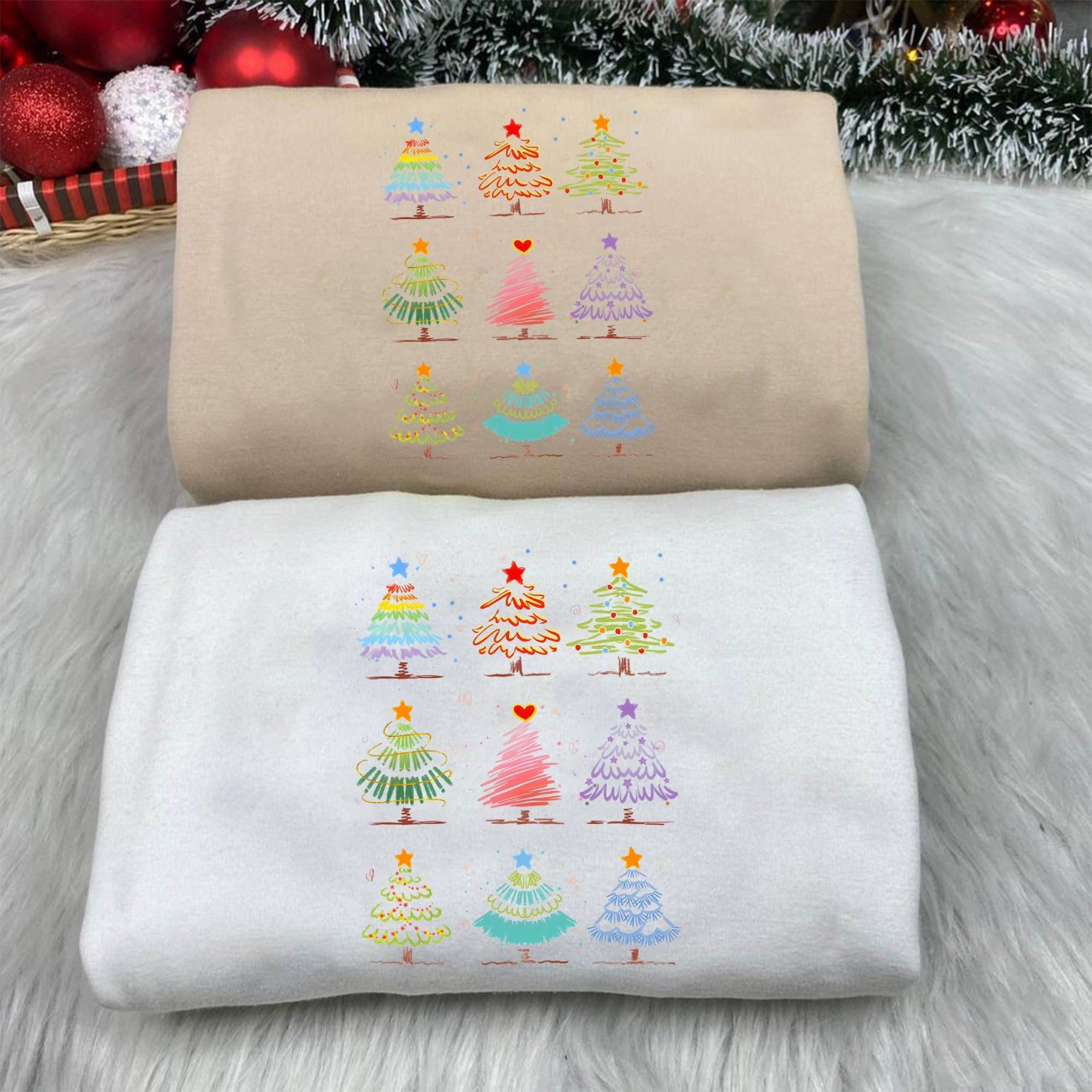 Weihnachtsbaum Muster Shirt, Bunter Christmas Tree T-shirt, Festliches Xmas Sweatshirt, Lustige Weihnachtskleidung, Winter Geschenk Idee Bringe Farbe und Freude in die festliche Jahreszeit mit unserem Weihnachtsbaum Muster Shirt EuroEuro! Dieses liebevolle Design zeigt verschiedene bunte Tannenbäume